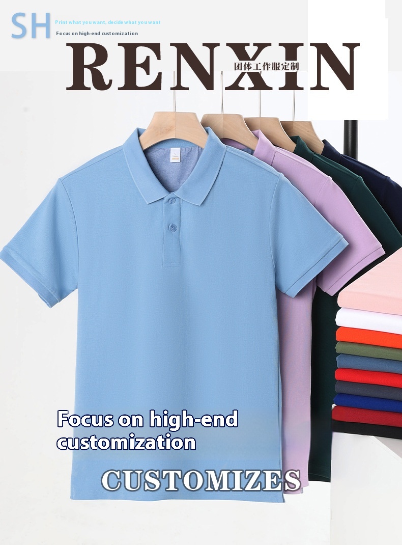 220g Back Of Turtle Split Solid Color Polo Collar T-shirt