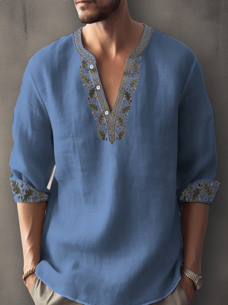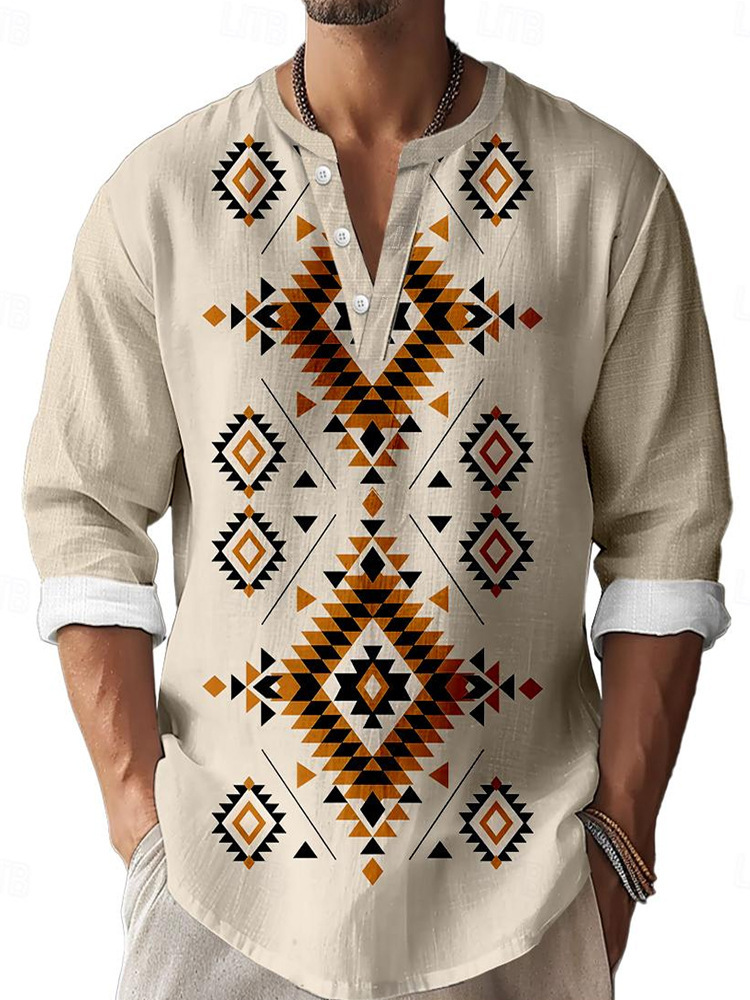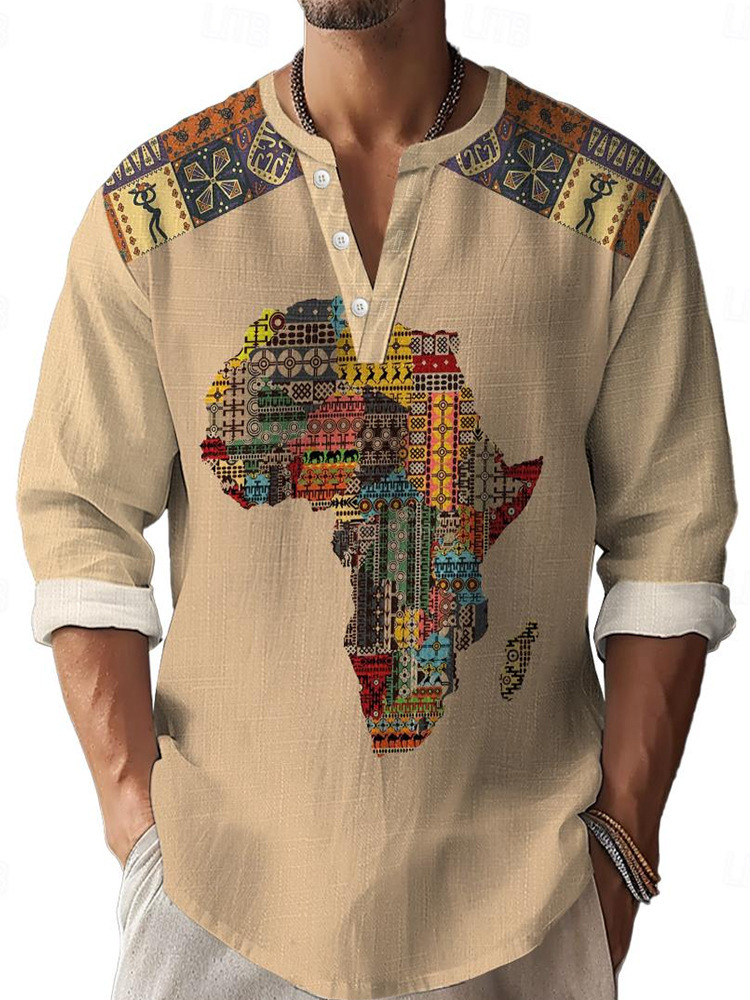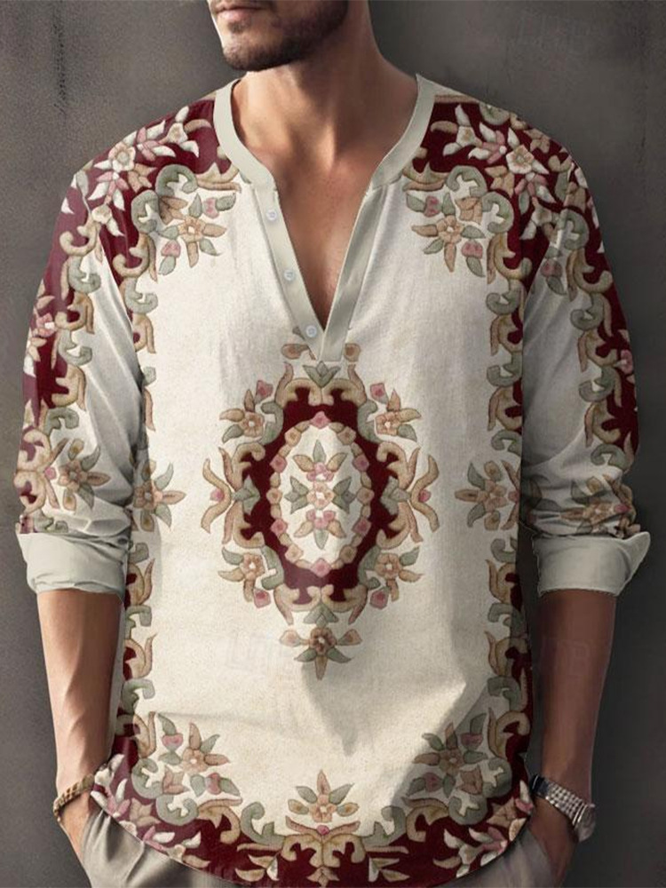 3D Digital Printing Bamboo Linen Long Sleeve European And American Men