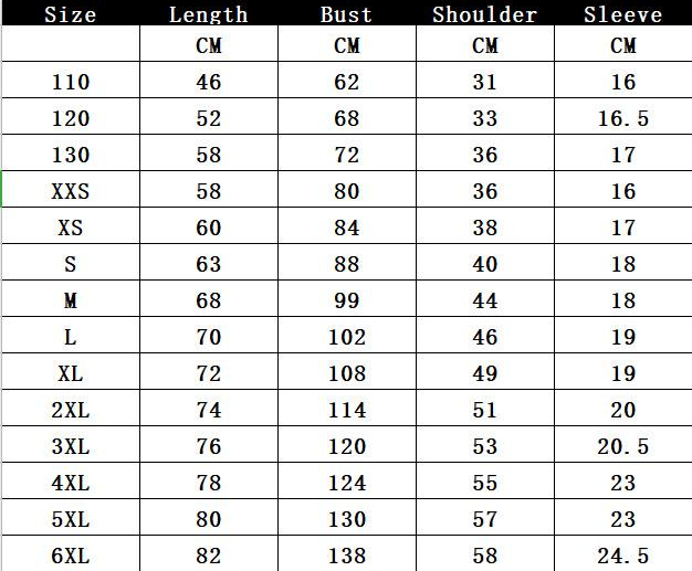 Size:XXS,XS,S,M,L,XL,XXL,3XL,4XL,5XL,6XL,110,120,130