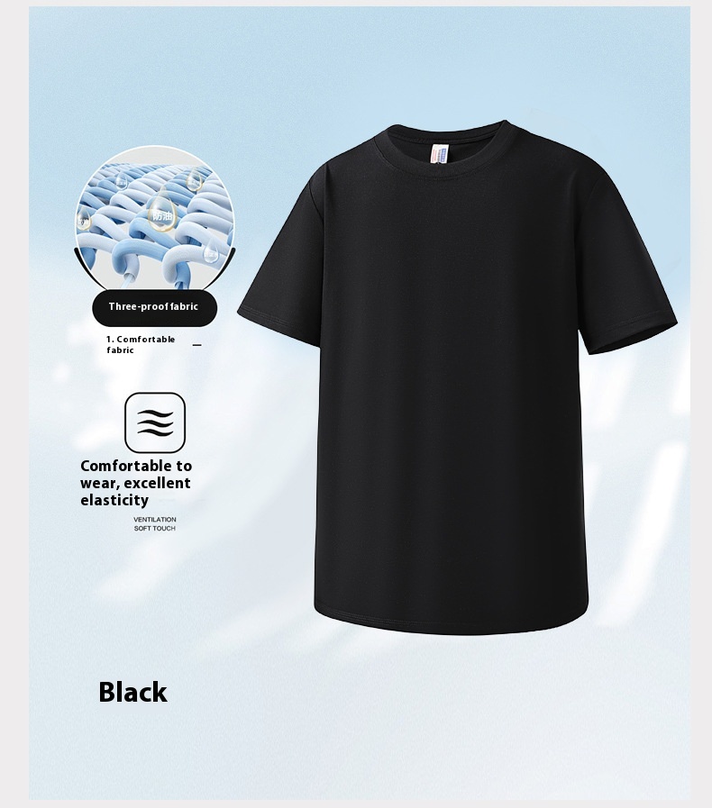 Antibacterial Three-proof Round Neck Solid Color Short Sleeve