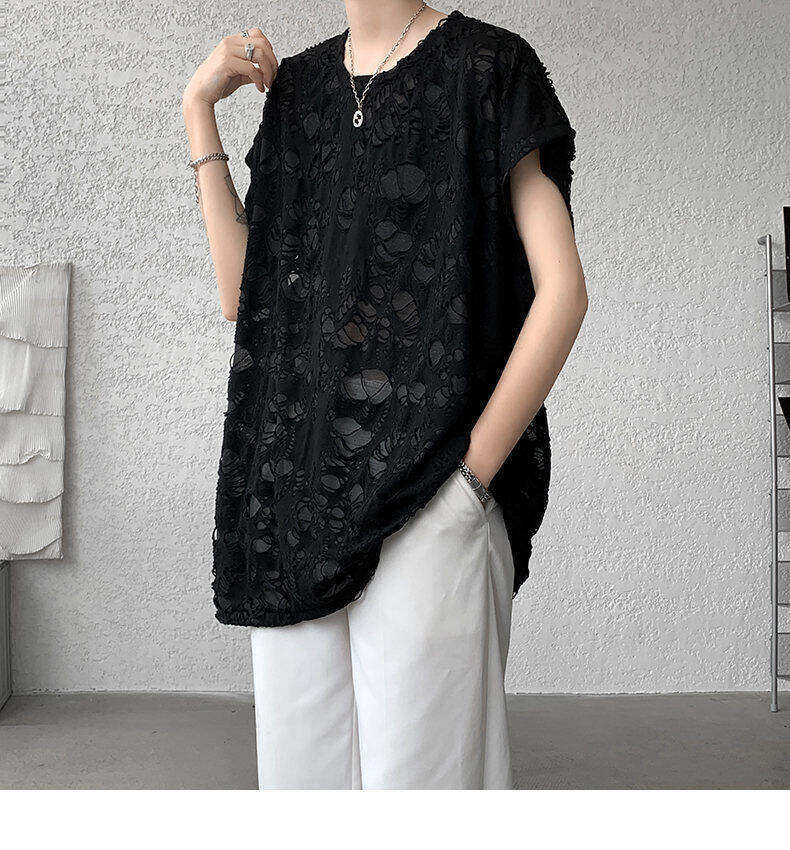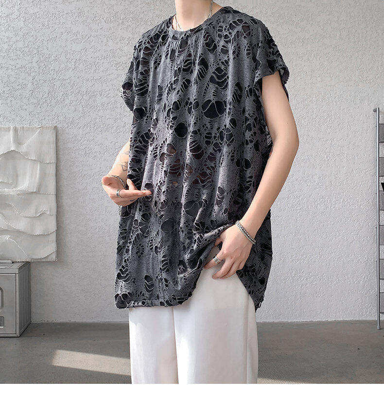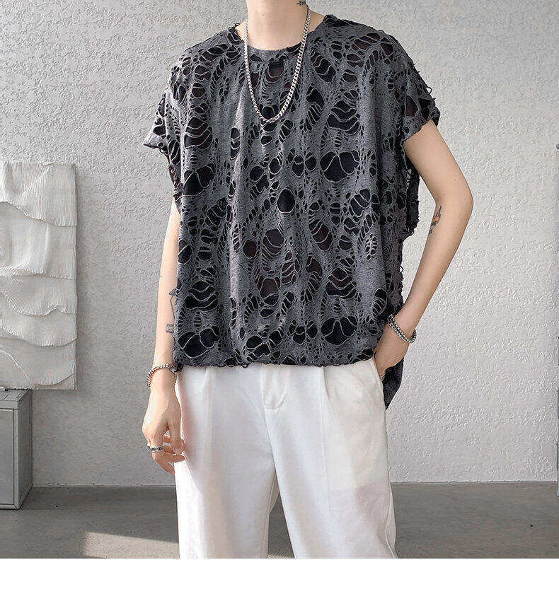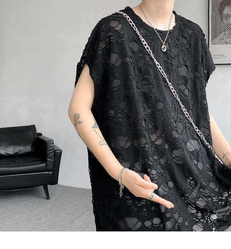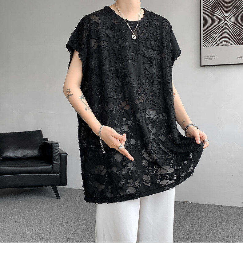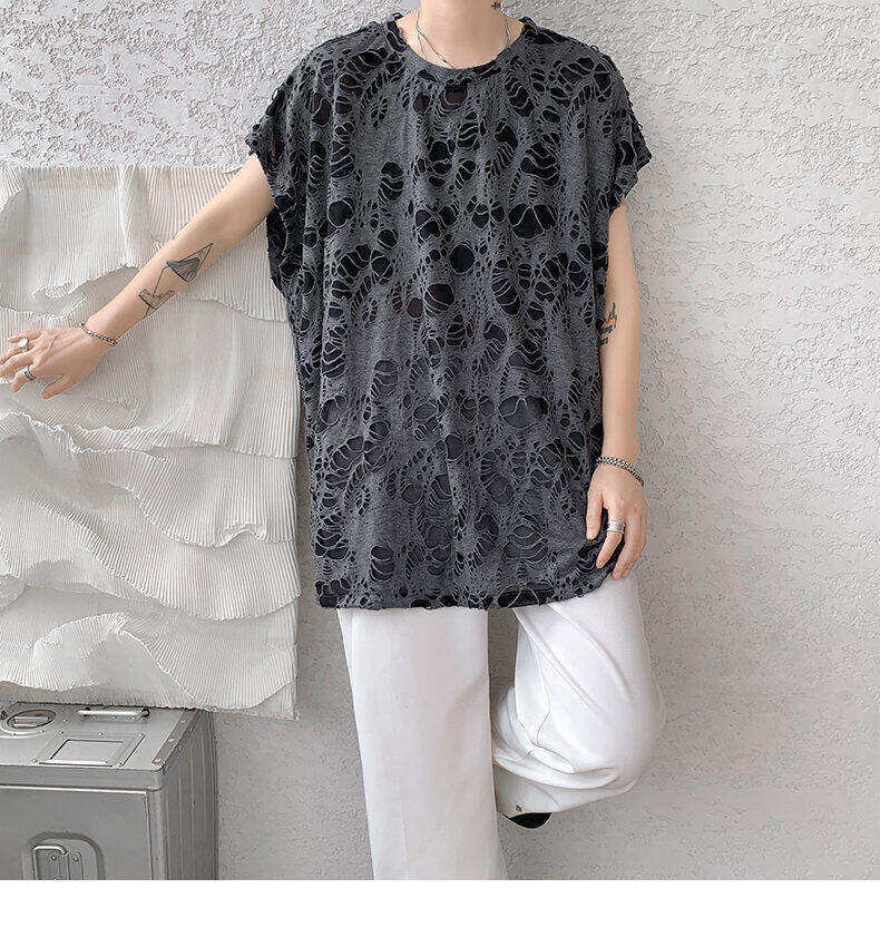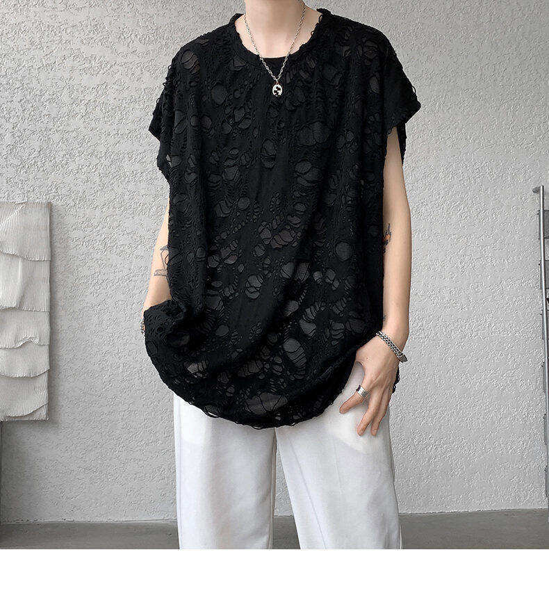 Black Ripped Beggar Sleeveless Wide Shoulder Vest