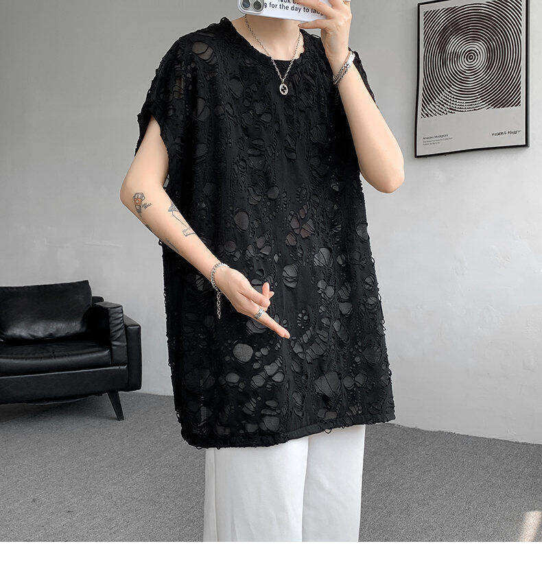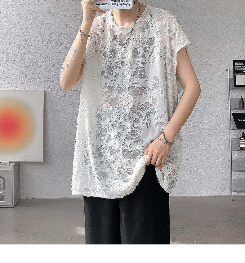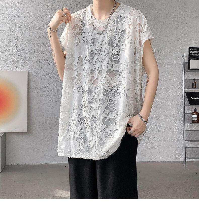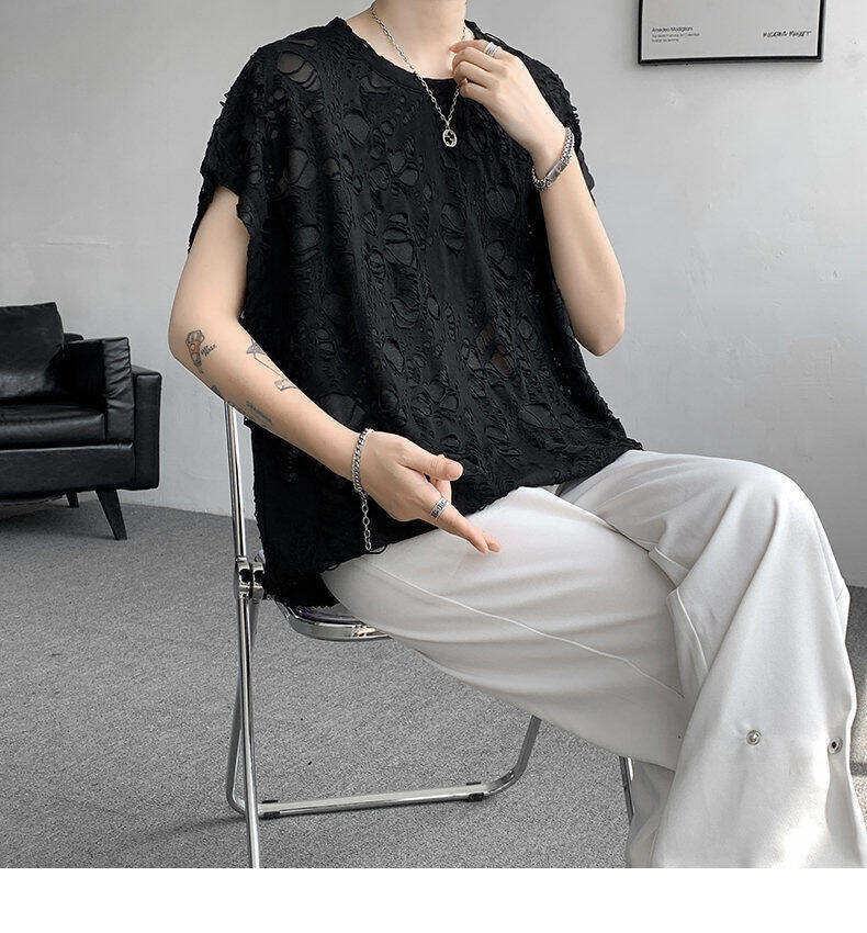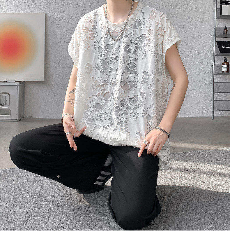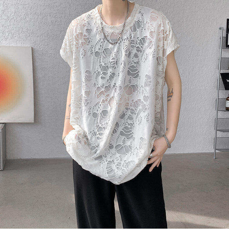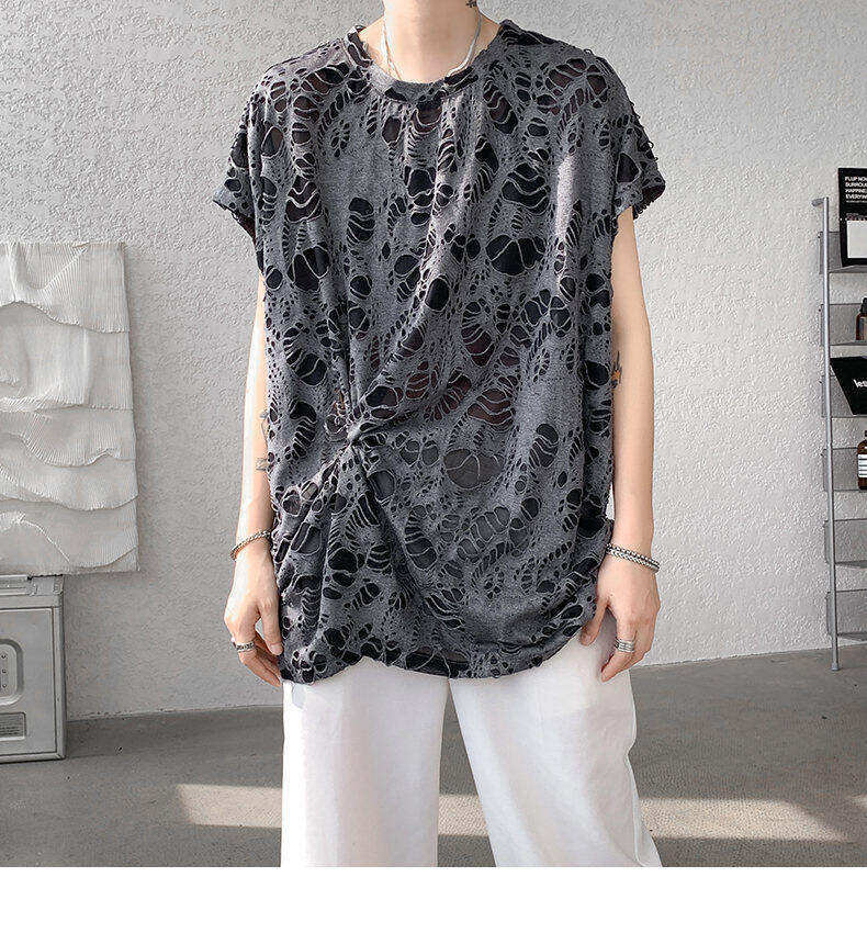 Black Ripped Beggar Sleeveless Wide Shoulder Vest