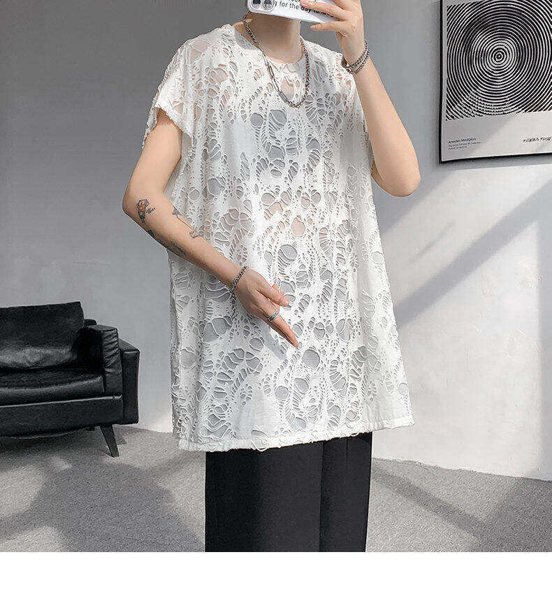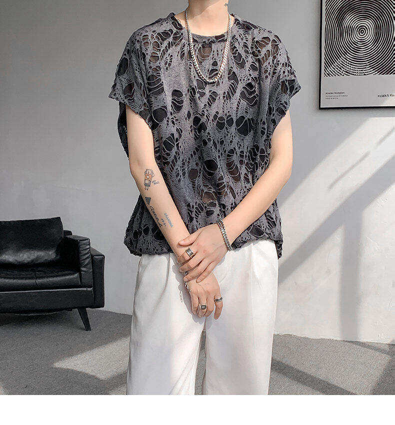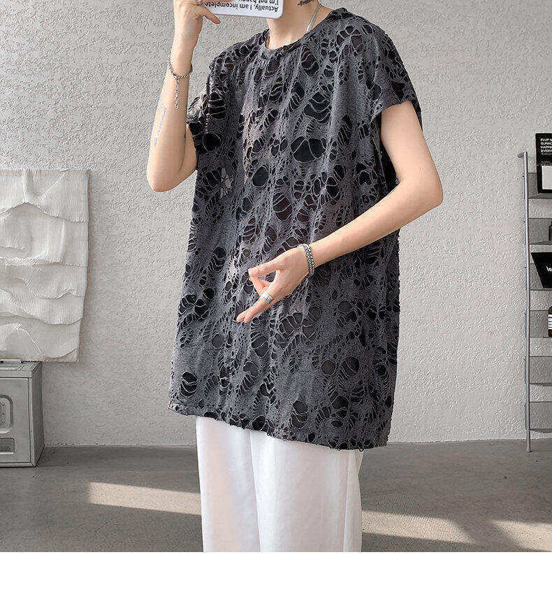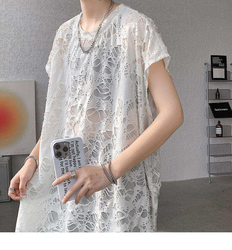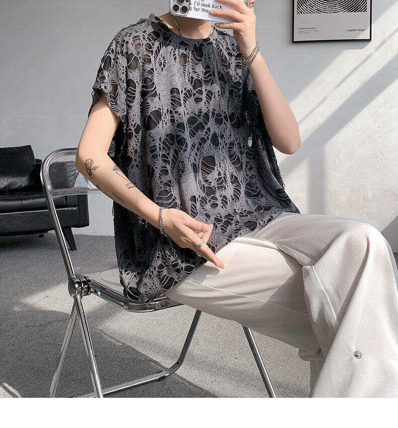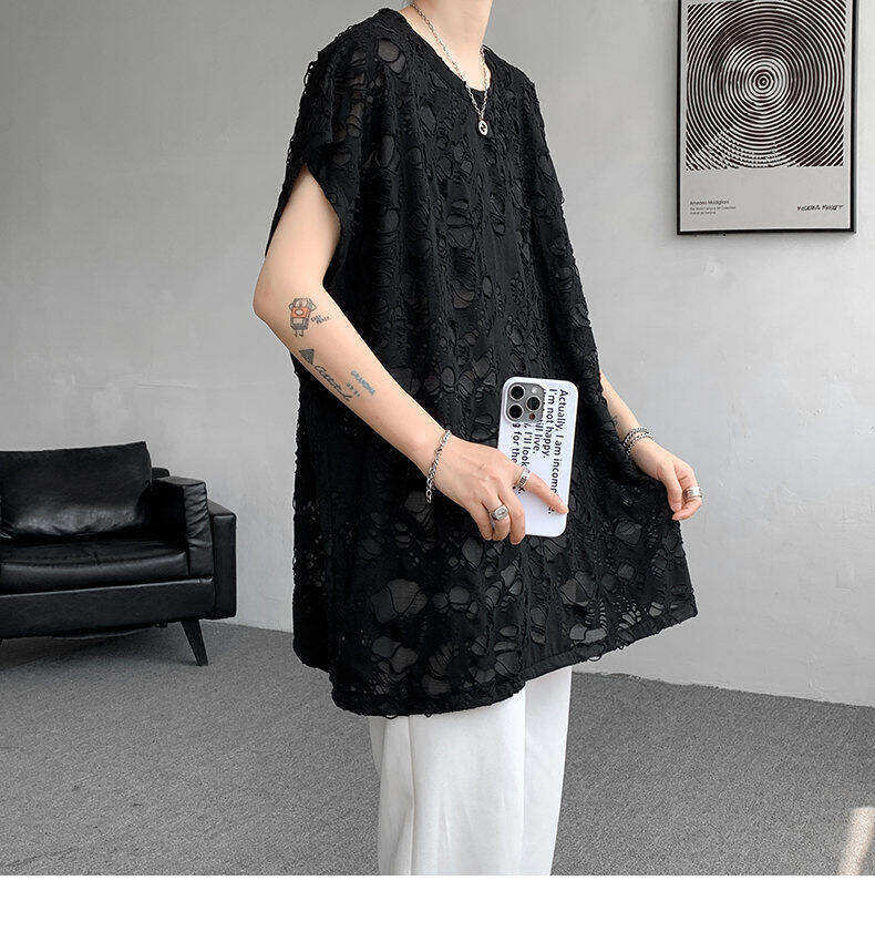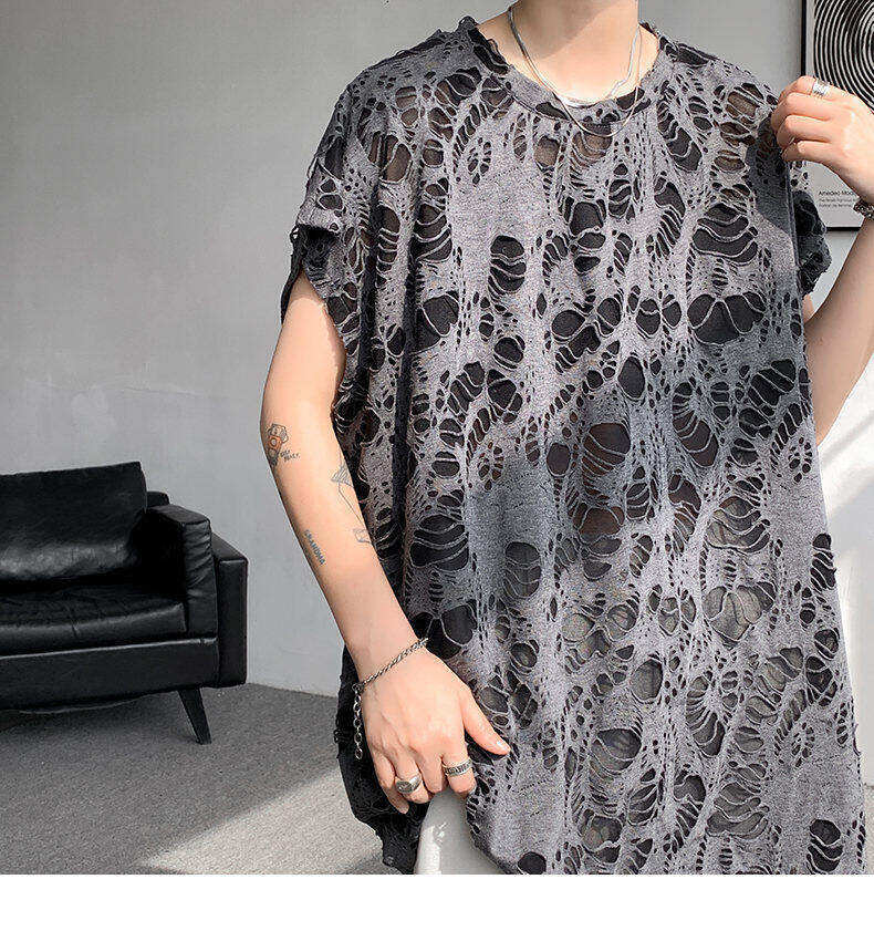 Black Ripped Beggar Sleeveless Wide Shoulder Vest