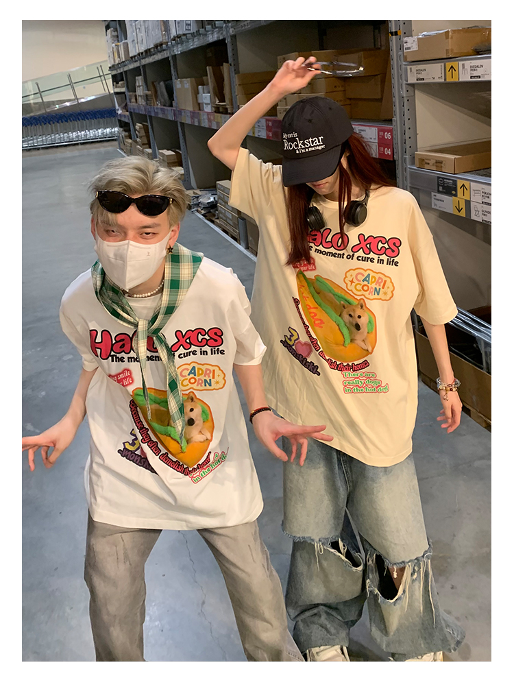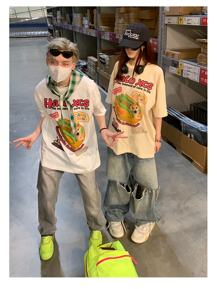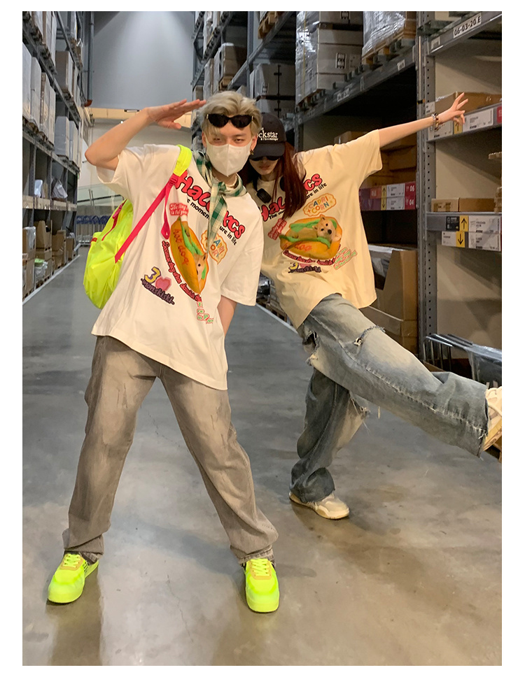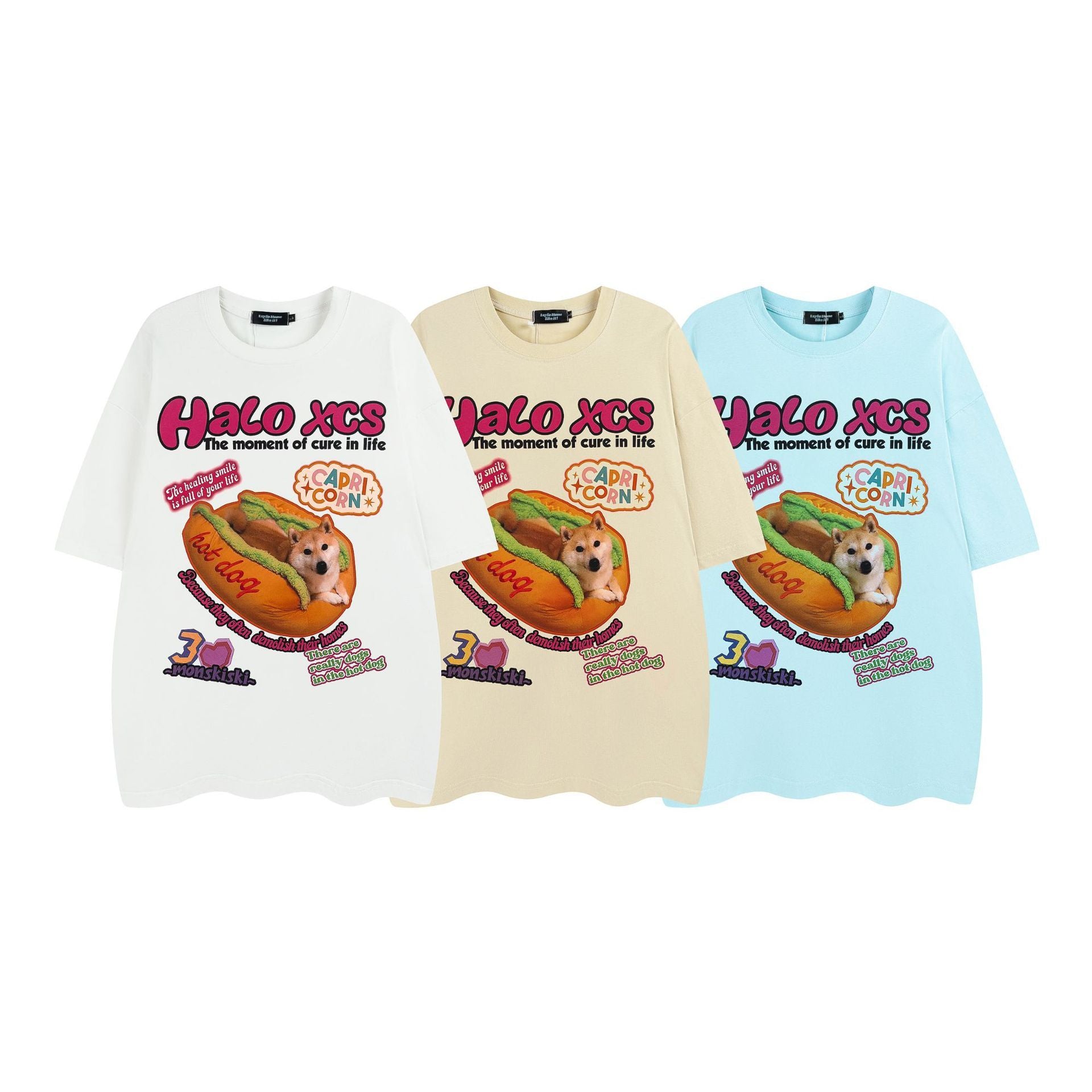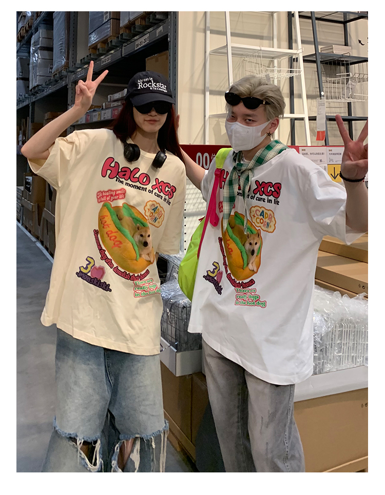 Cartoon Hamburger Dog Printed Short-sleeved T-shirt Couple's Tops