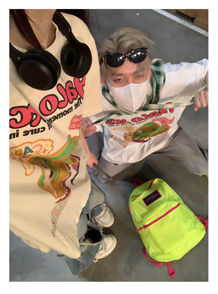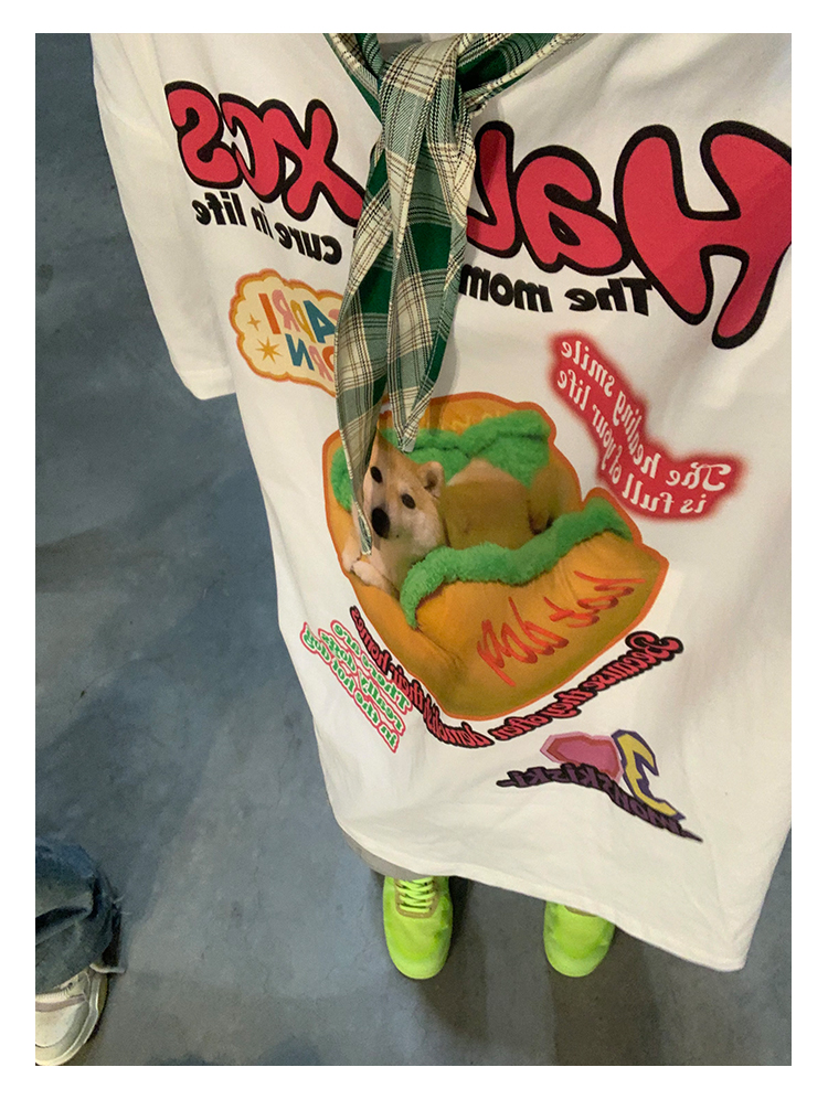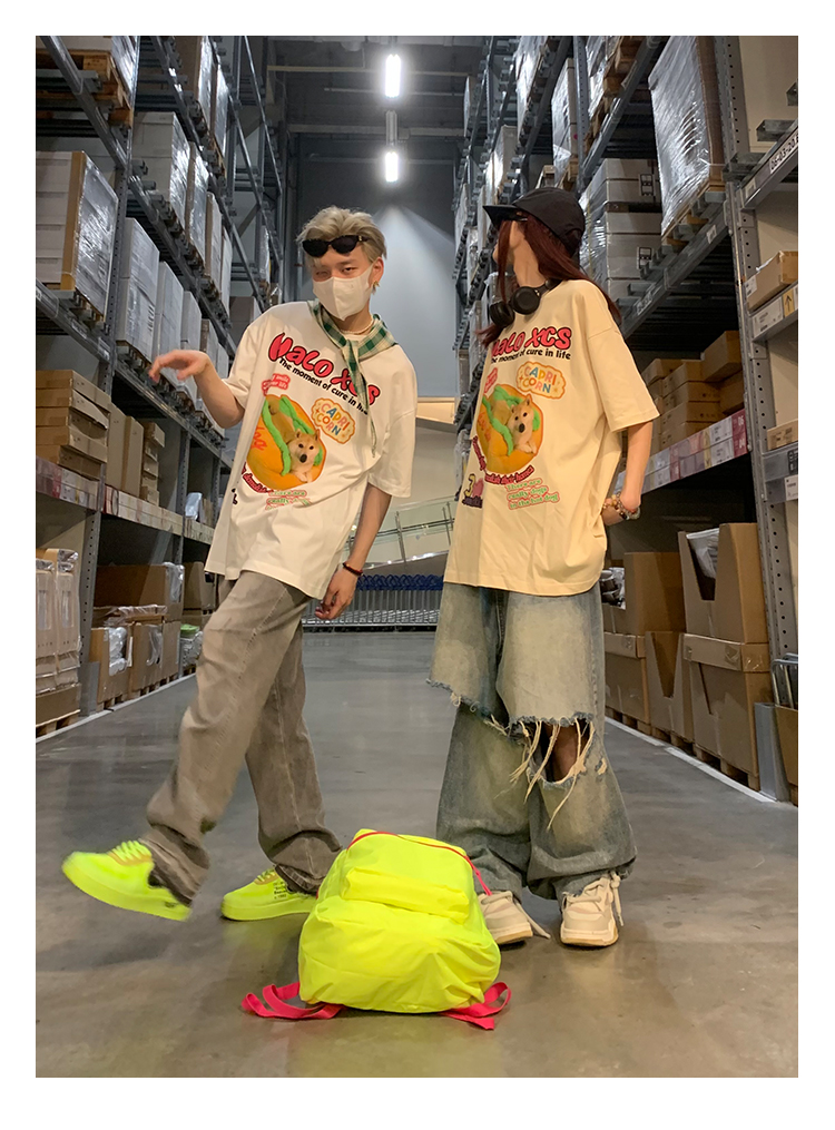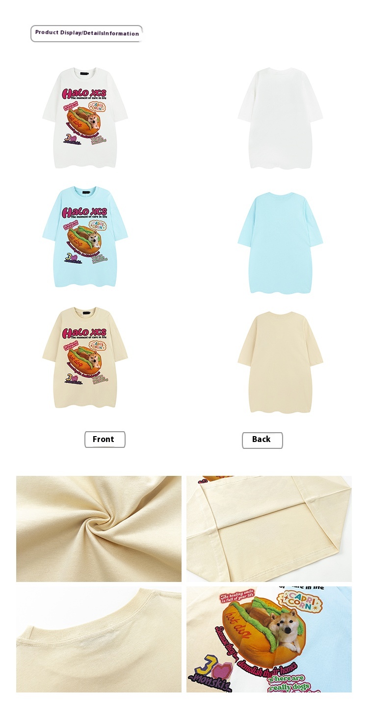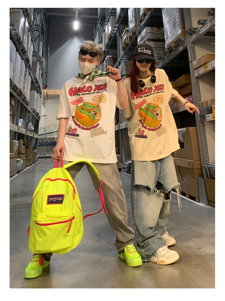 Cartoon Hamburger Dog Printed Short-sleeved T-shirt Couple's Tops