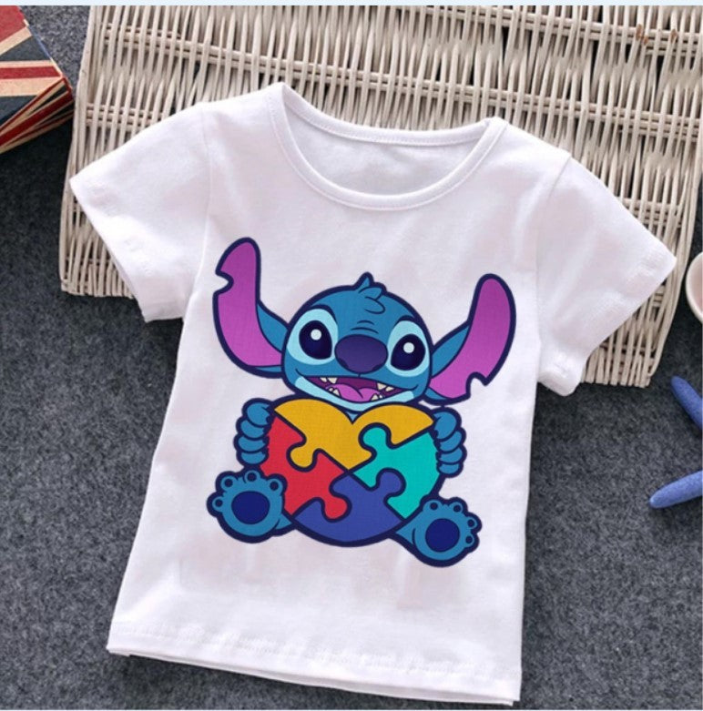 Cartoon Puzzle T-shirt Summer Clothes