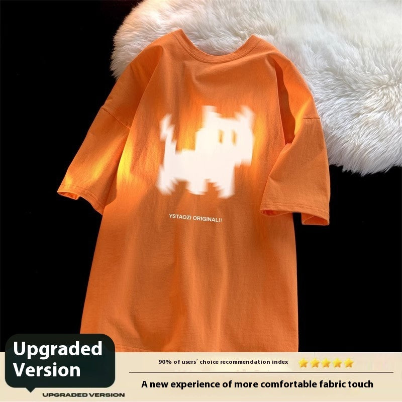 Cat Print Hong Kong Style Loose Short Sleeved Shirt