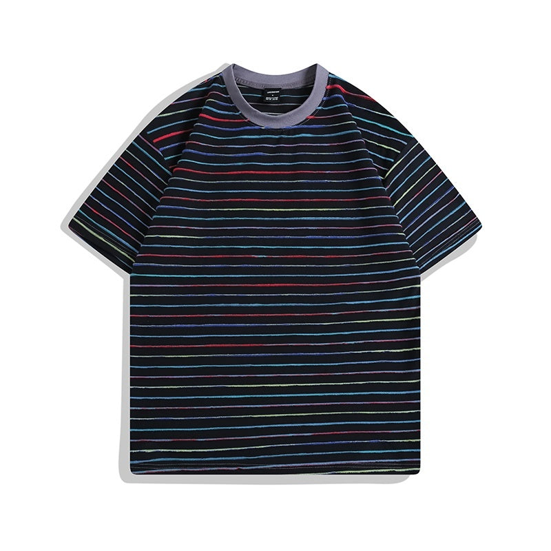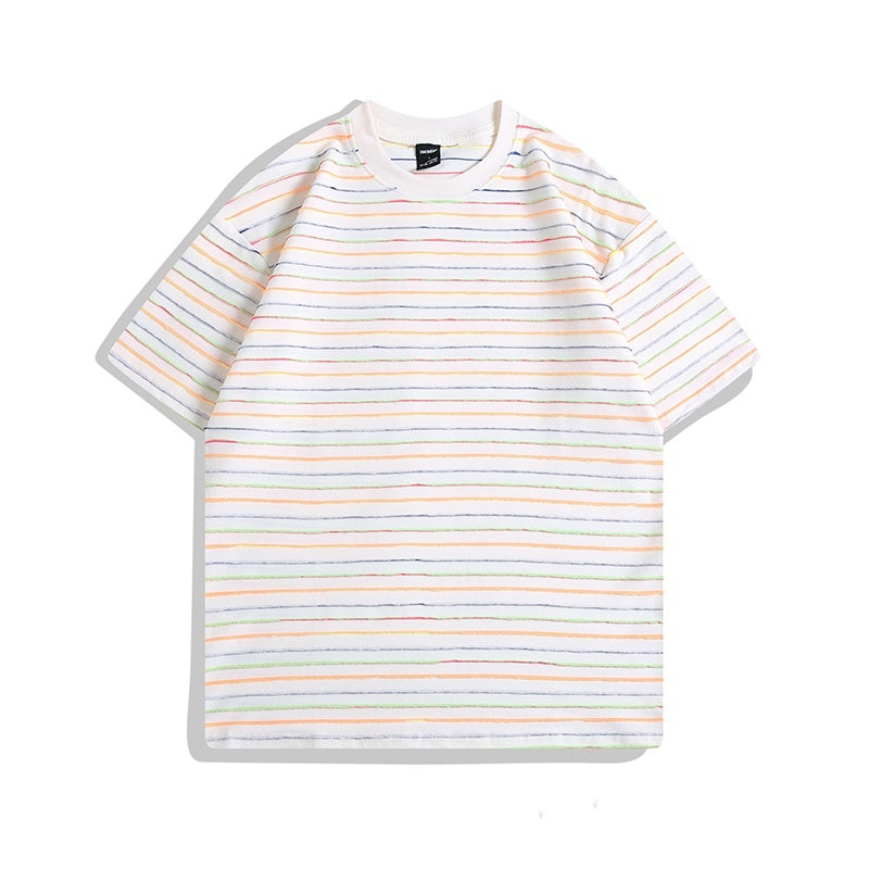 Color Striped Short Sleeve Round Neck Couple Half Sleeve T-shirt
