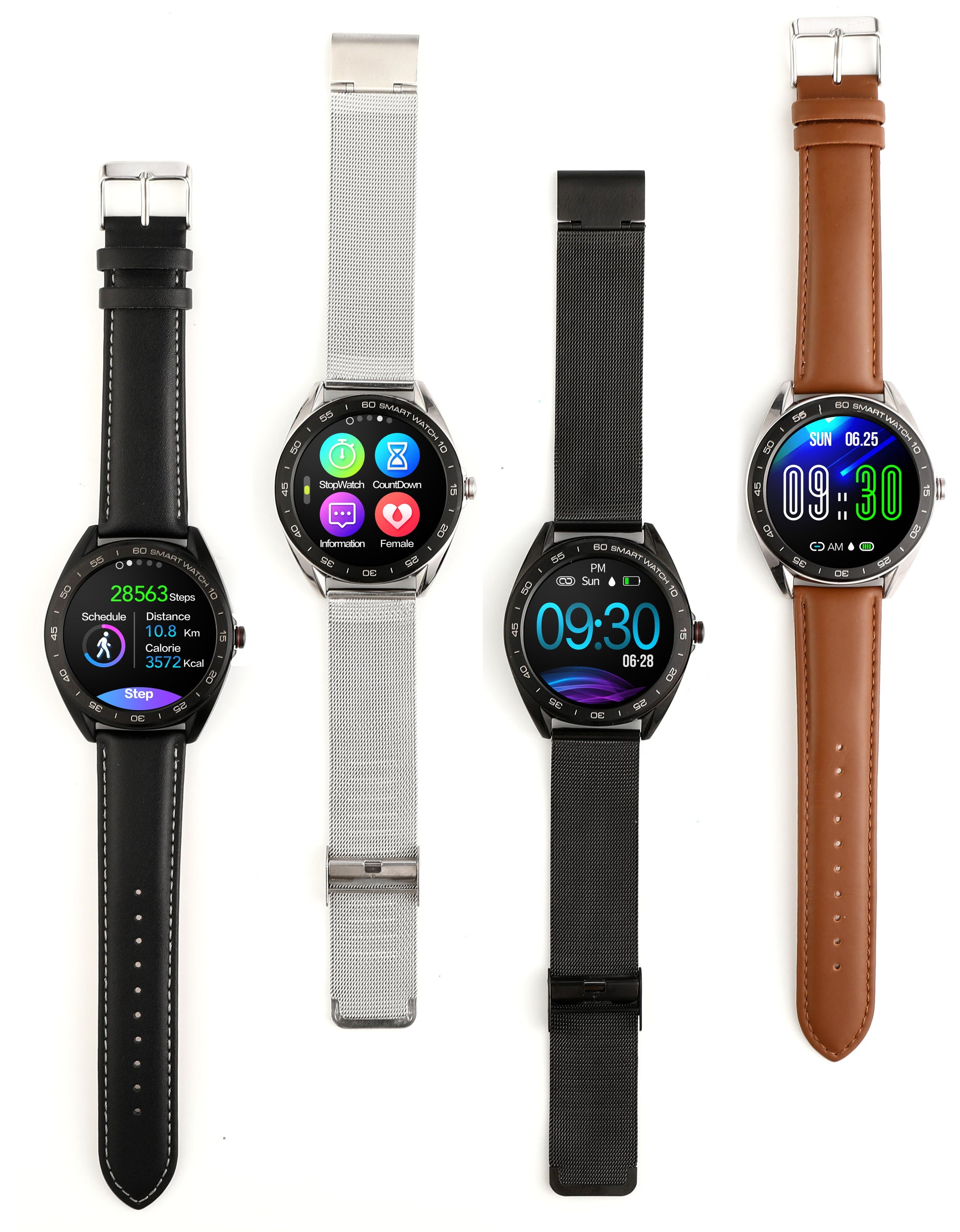 Time display, step counting, calories, distance, heart rate, blood pressure, sleep time, switch display, stopwatch