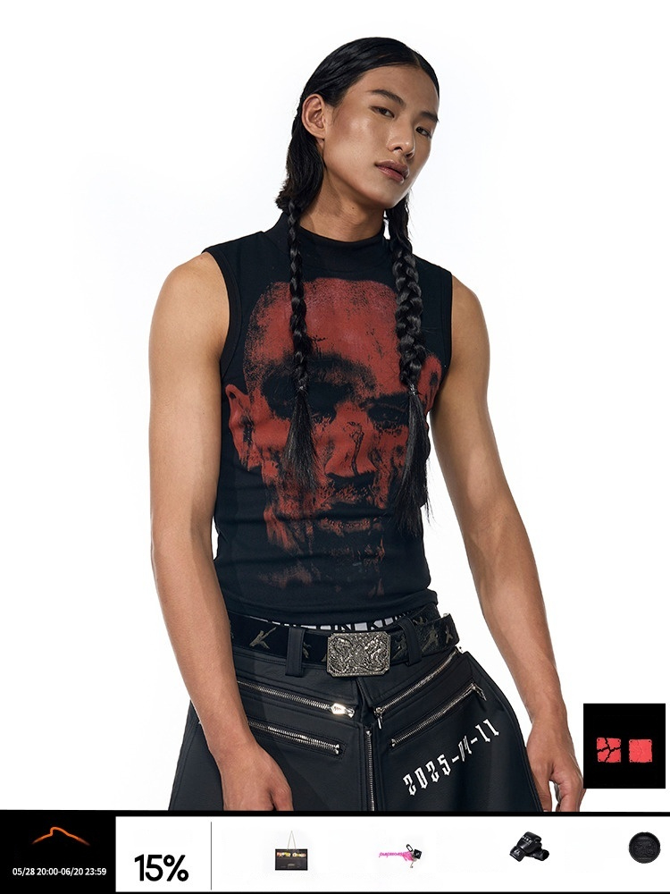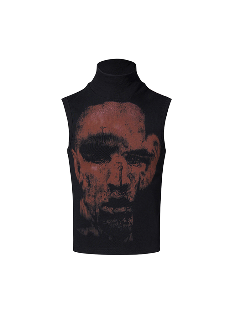 Half Turtleneck Slim-fit Printed Sleeveless T-shirt