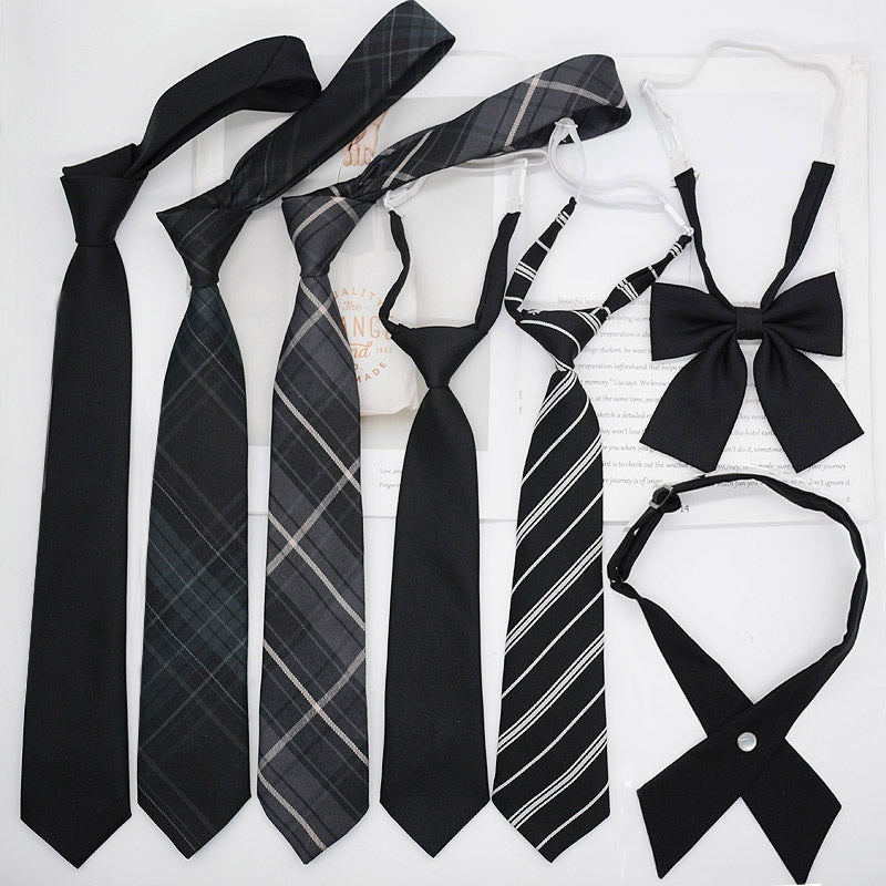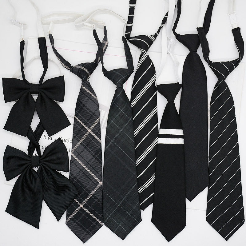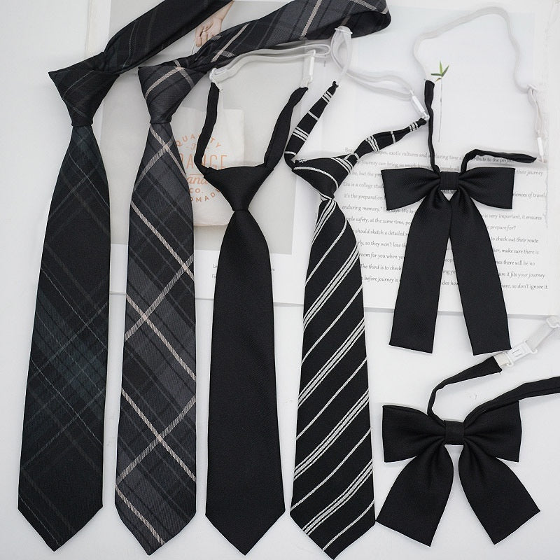 JK Tie Black Gray Plaid Striped Girl Bow