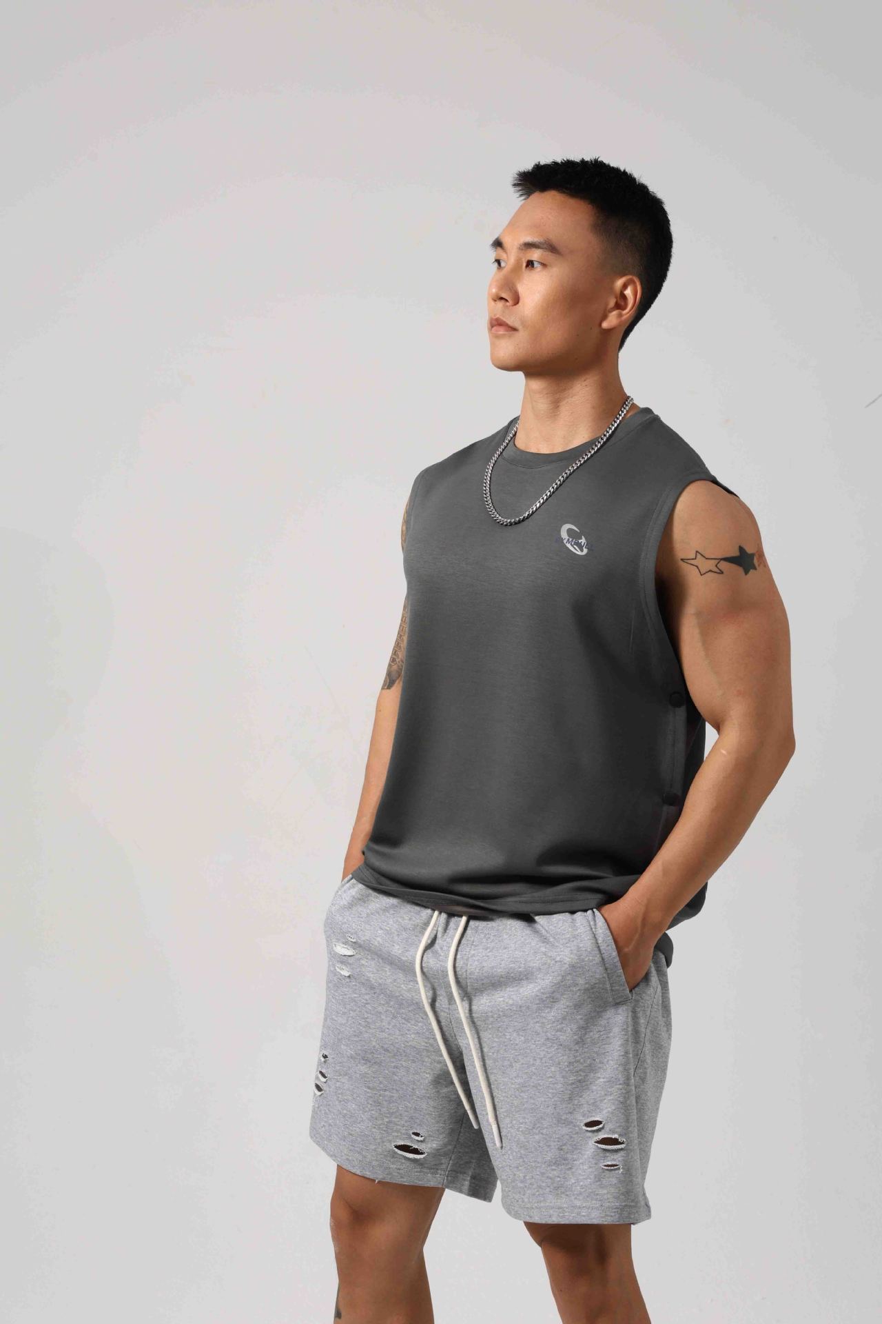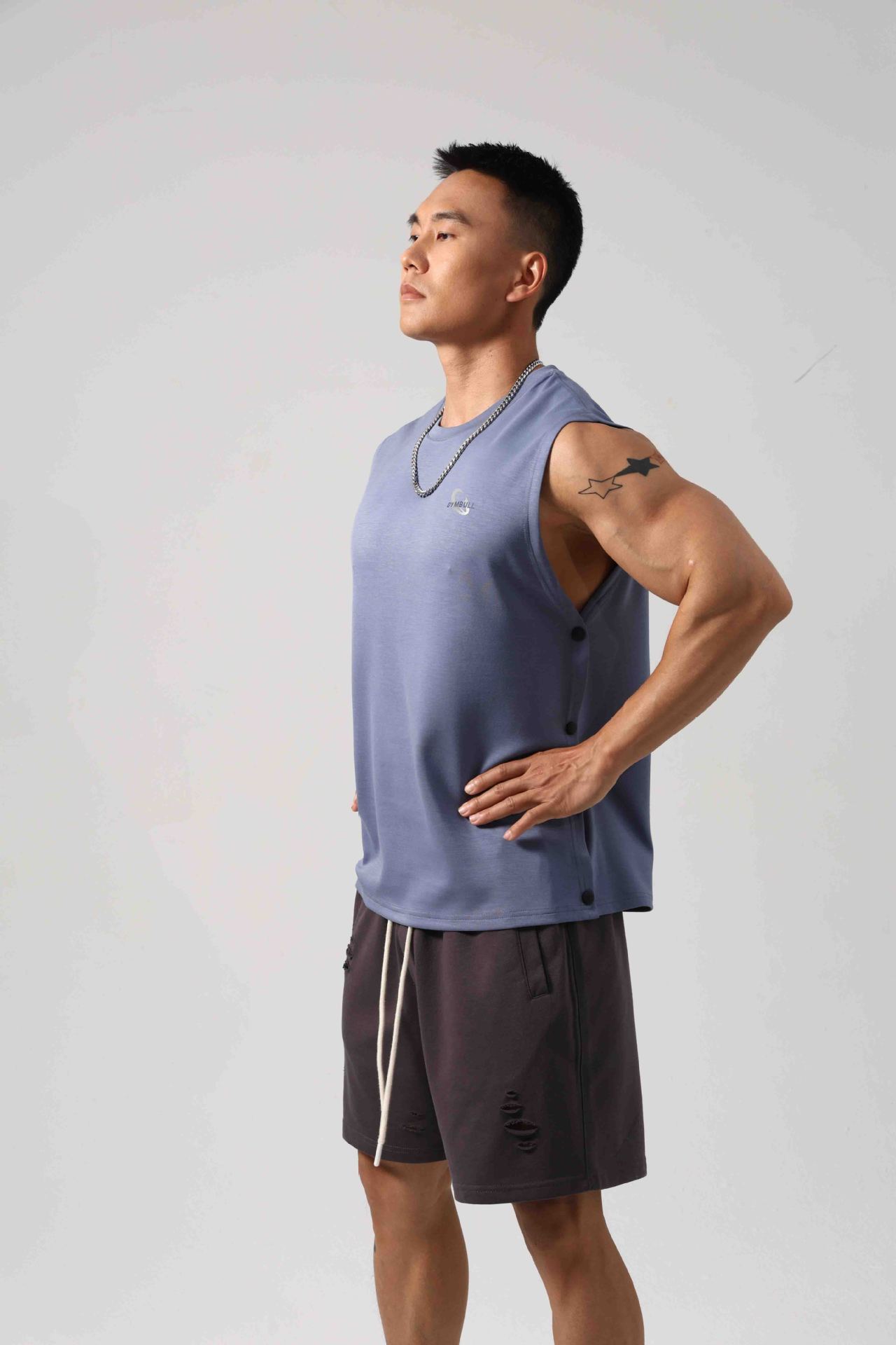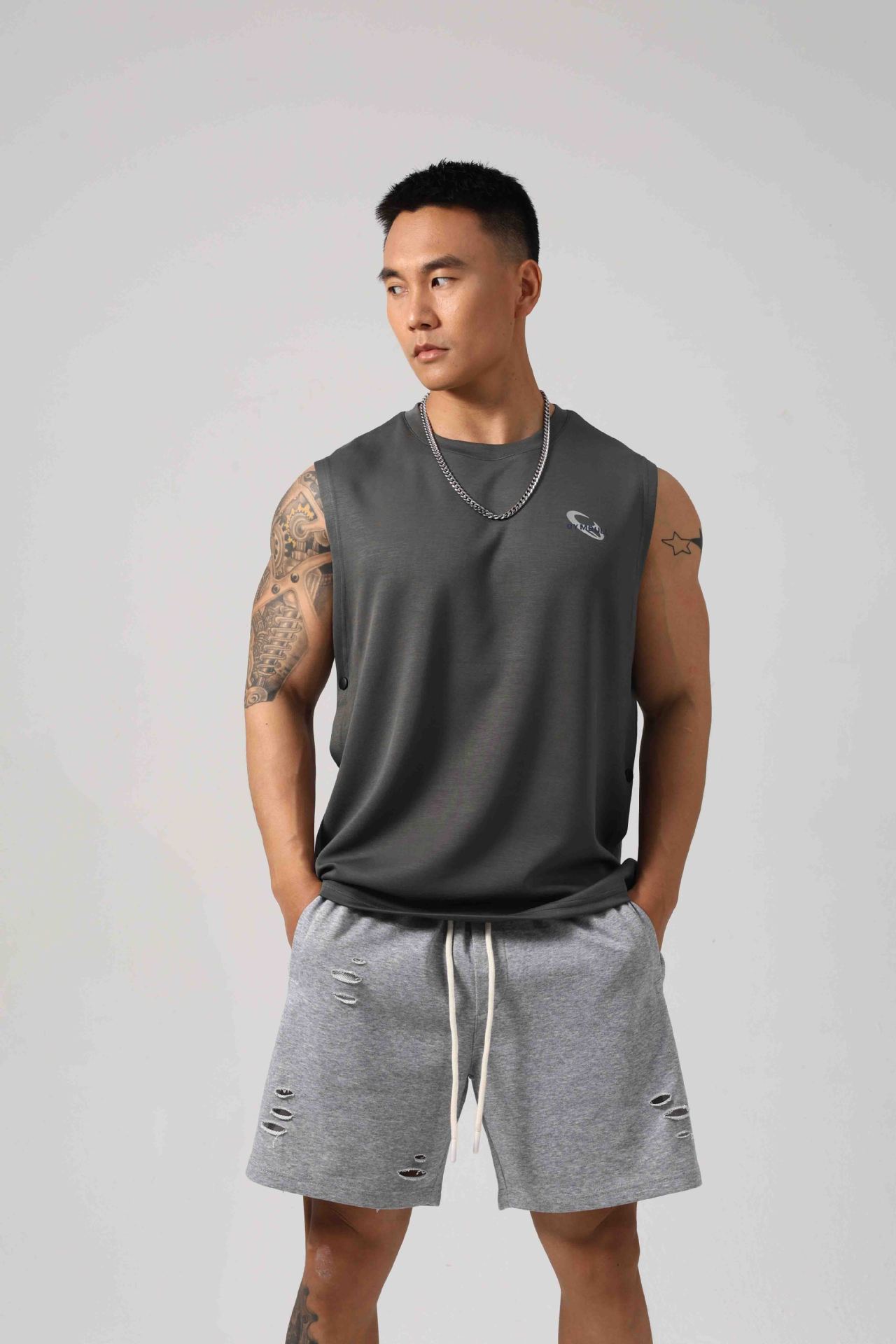 Korean Style Fitness Sports Loose Vest Can Be Opened On Both Sides Hidden Hook Design