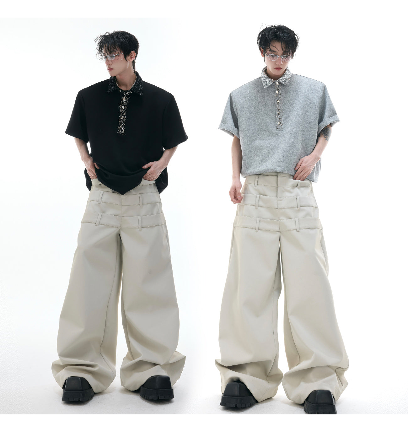 Style details: splicing, metal accessory decoration, edging