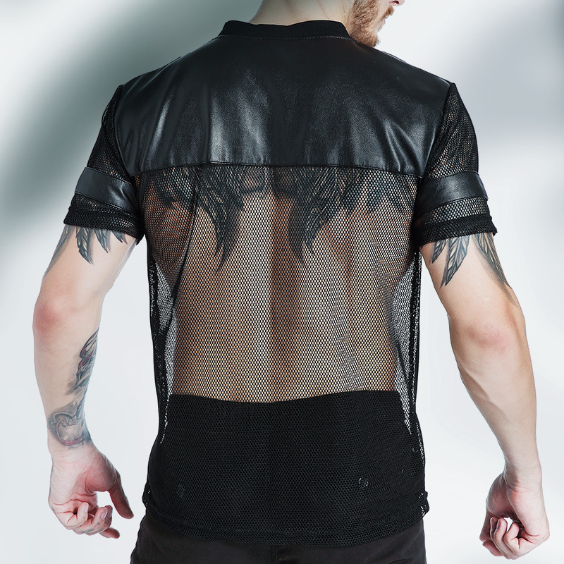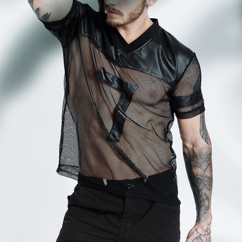 Men's Breathable Running Mesh T-shirt Stitching Casual Sports V-neck