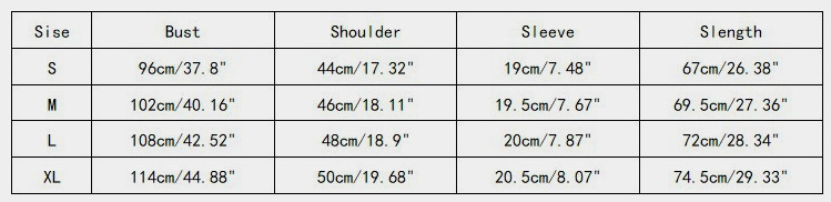 1. Asian sizes are 1 to 2 sizes smaller than European and American people. Choose the larger size if your size between two sizes. Please allow 2-3cm differences due to manual measurement. 2. Please check the size chart carefully before you buy the item, if you don't know how to choose size, please contact our customer service. 3.As you know, the different computers display colors differently, the color of the actual item may vary slightly from the following images.