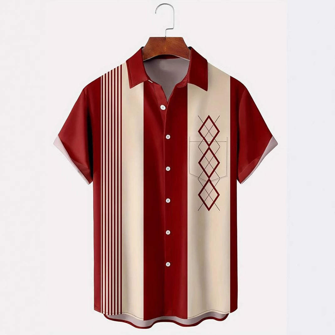 Men's Contrast Color Loose Short-sleeved Shirt Lapel