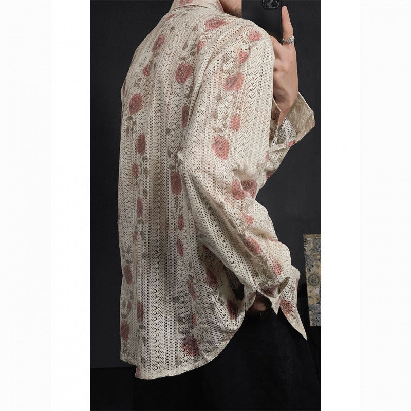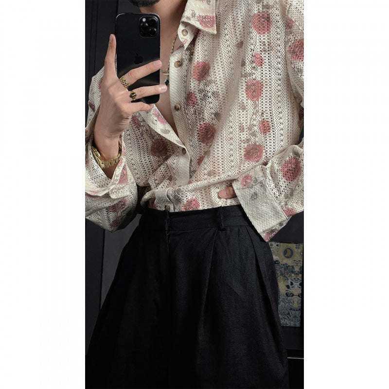 Men's Idle Style Hollow Flower Long Sleeve Shirt