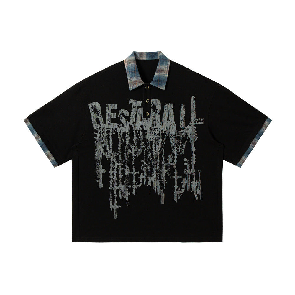 Men's Lapel Graffiti Printing Loose New All-match Short-sleeved Top