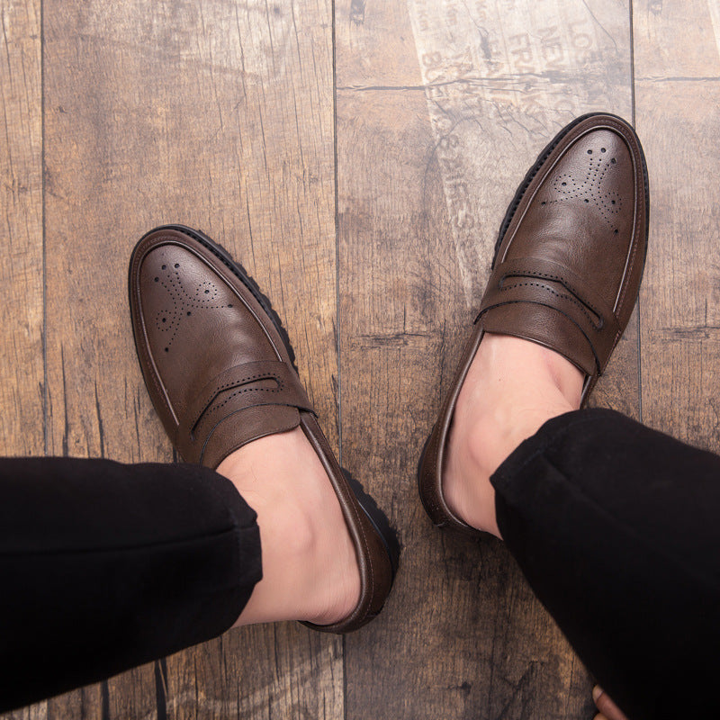 Men's Pointed Carved Leather British Business Casual Shoes