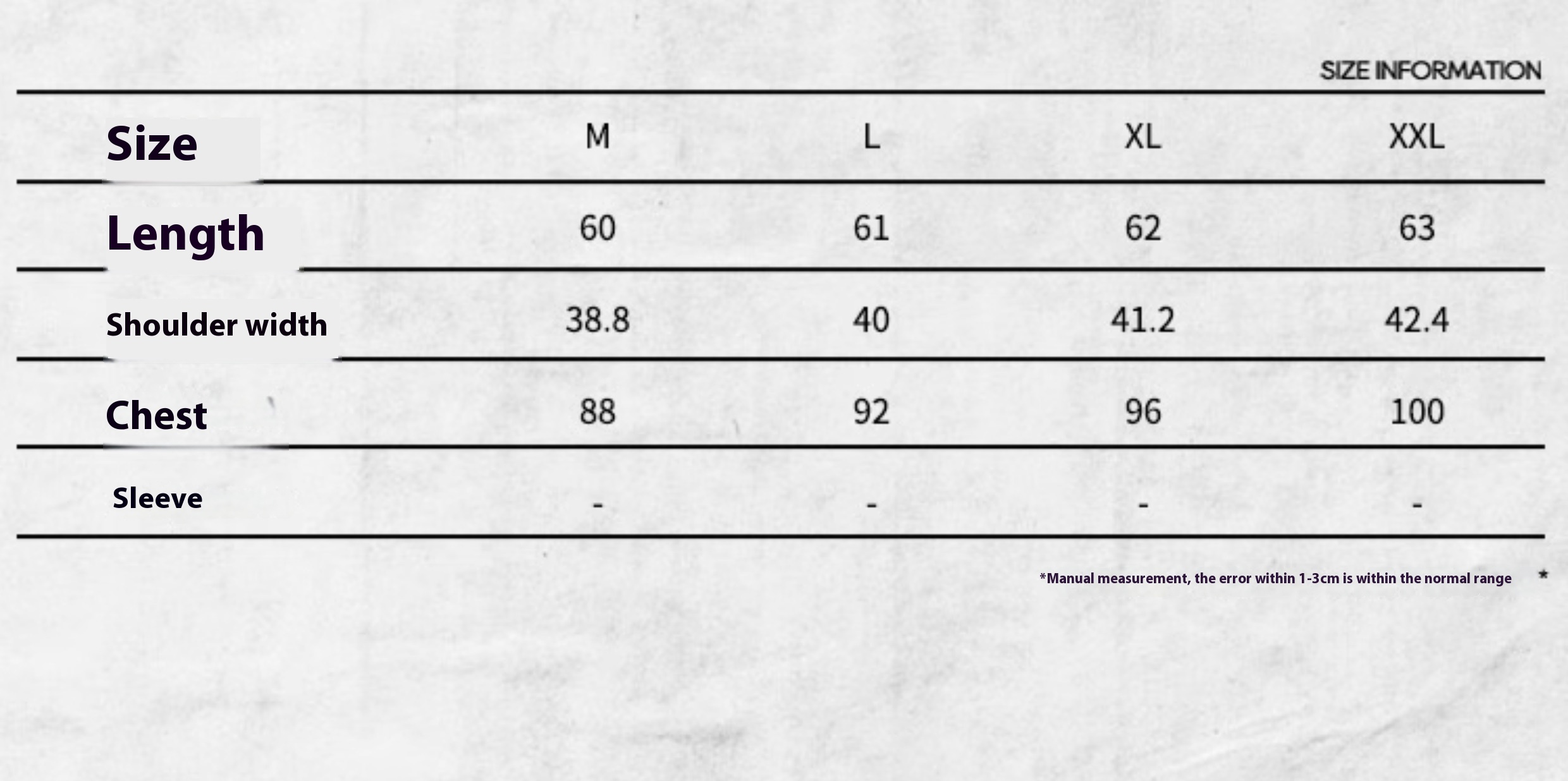 1. Asian sizes are 1 to 2 sizes smaller than European and American people. Choose the larger size if your size between two sizes. Please allow 2-3cm differences due to manual measurement. 2. Please check the size chart carefully before you buy the item, if you don't know how to choose size, please contact our customer service. 3.As you know, the different computers display colors differently, the color of the actual item may vary slightly from the following images.
