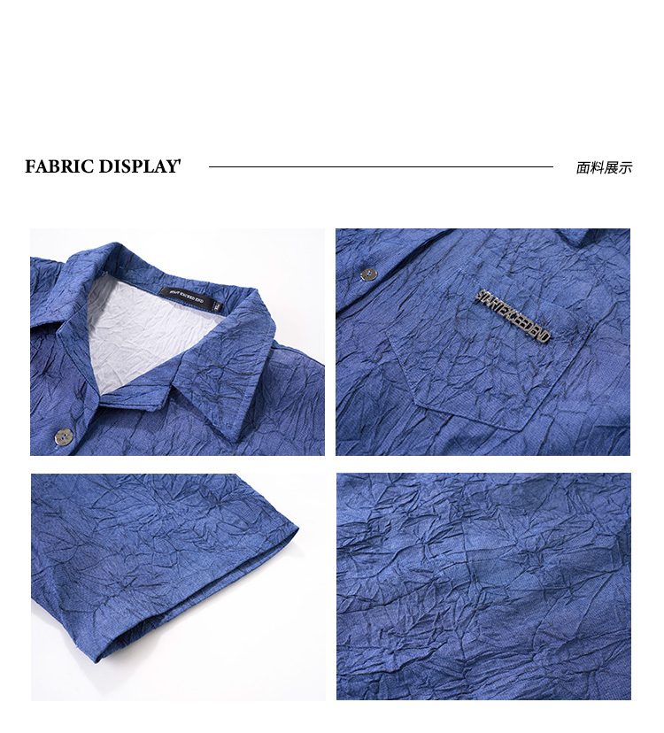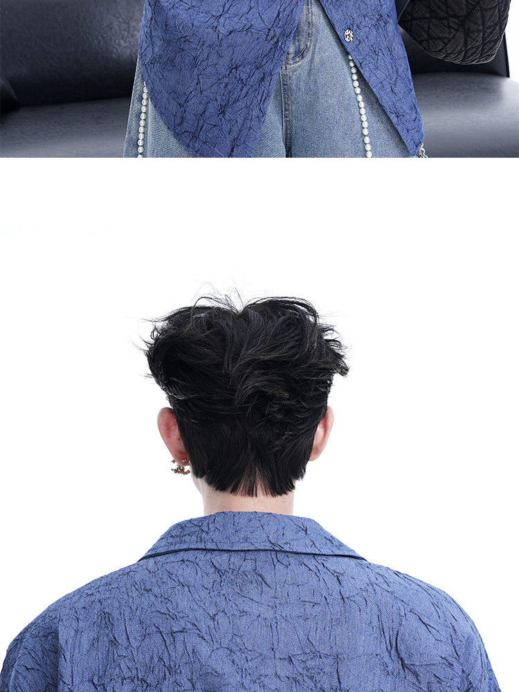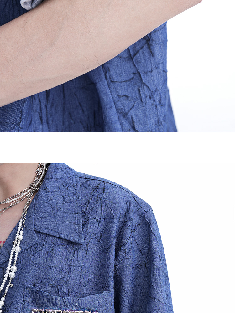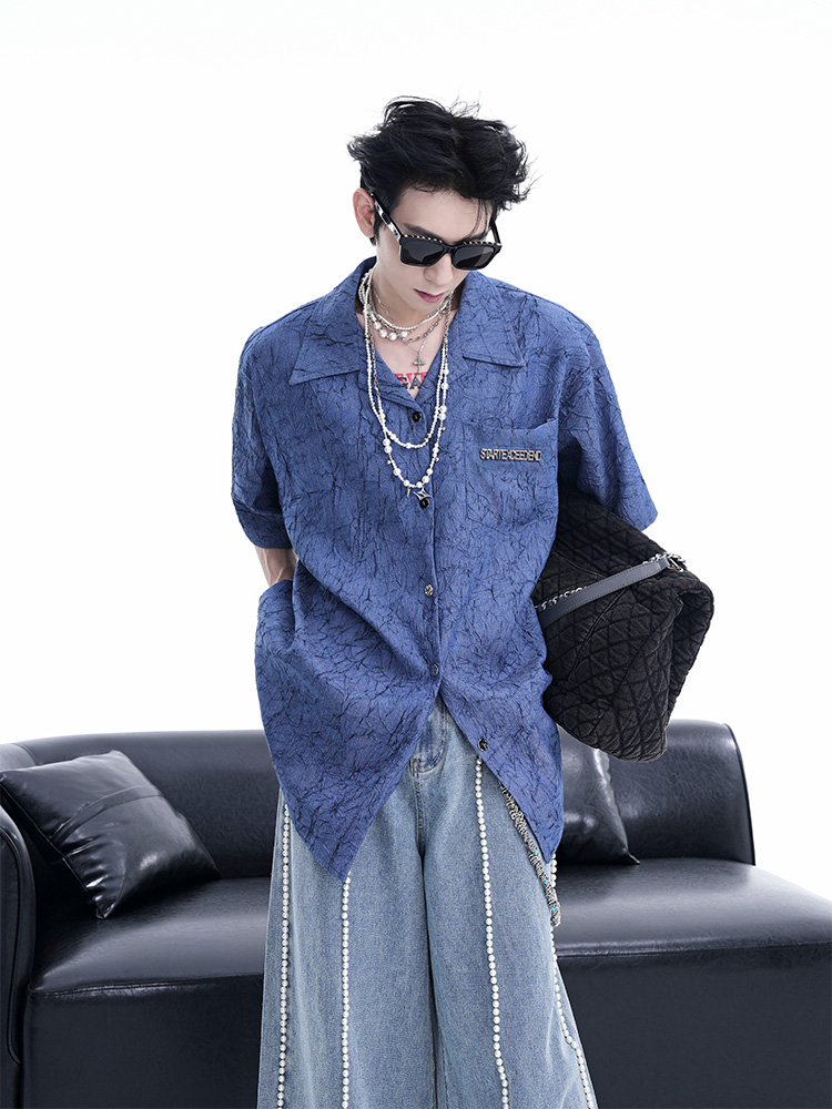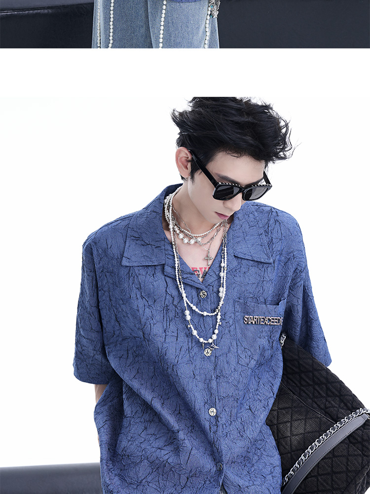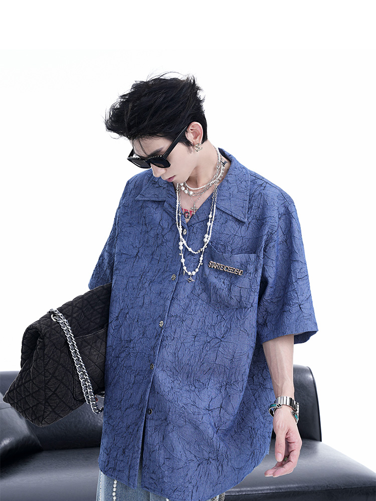 Niche Design Pleated Textured Short Shirt Men's Tops