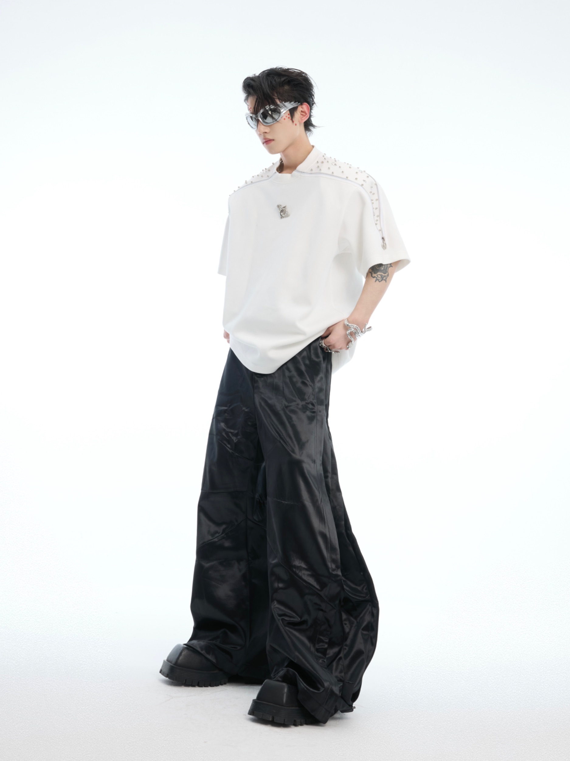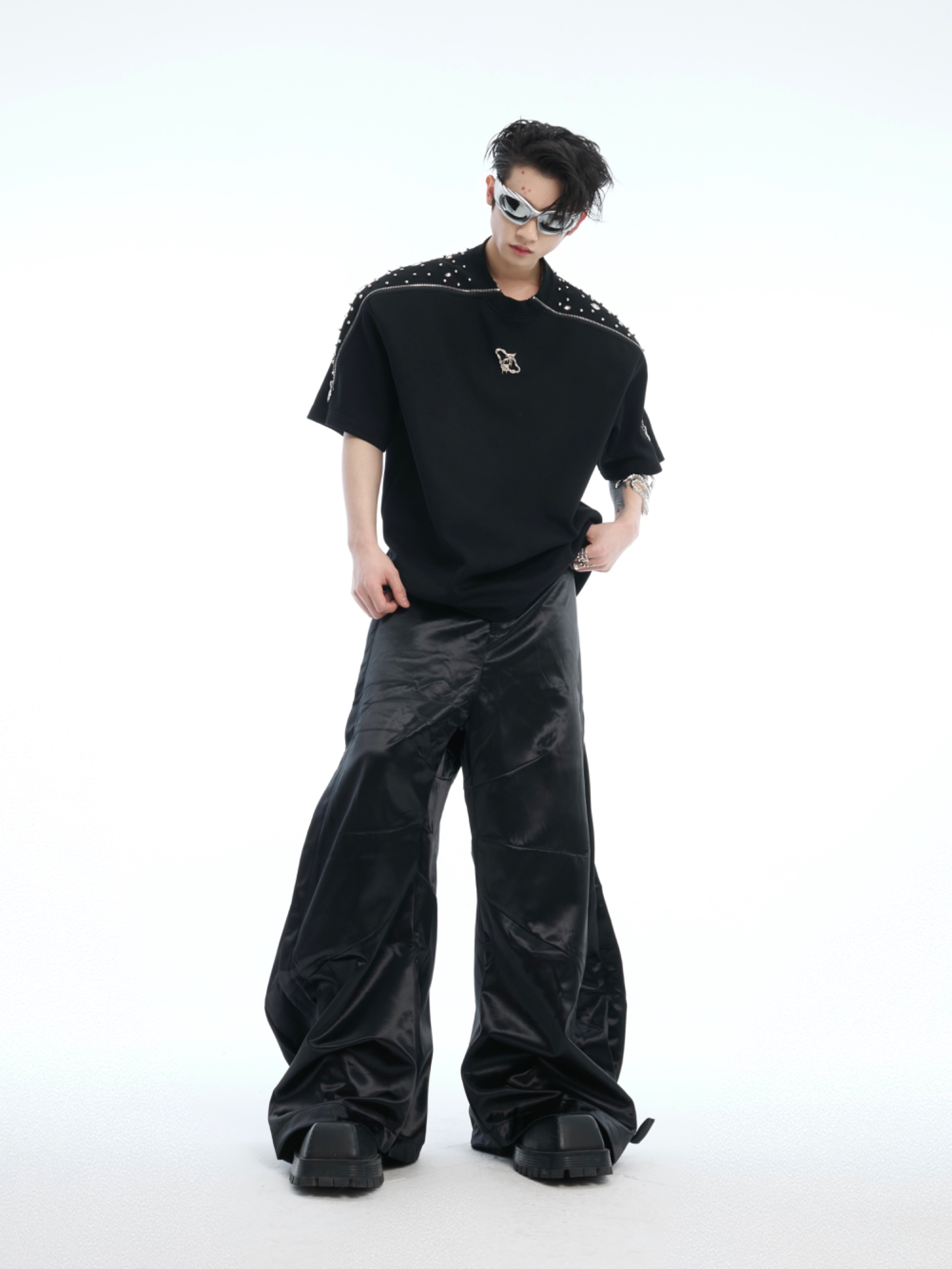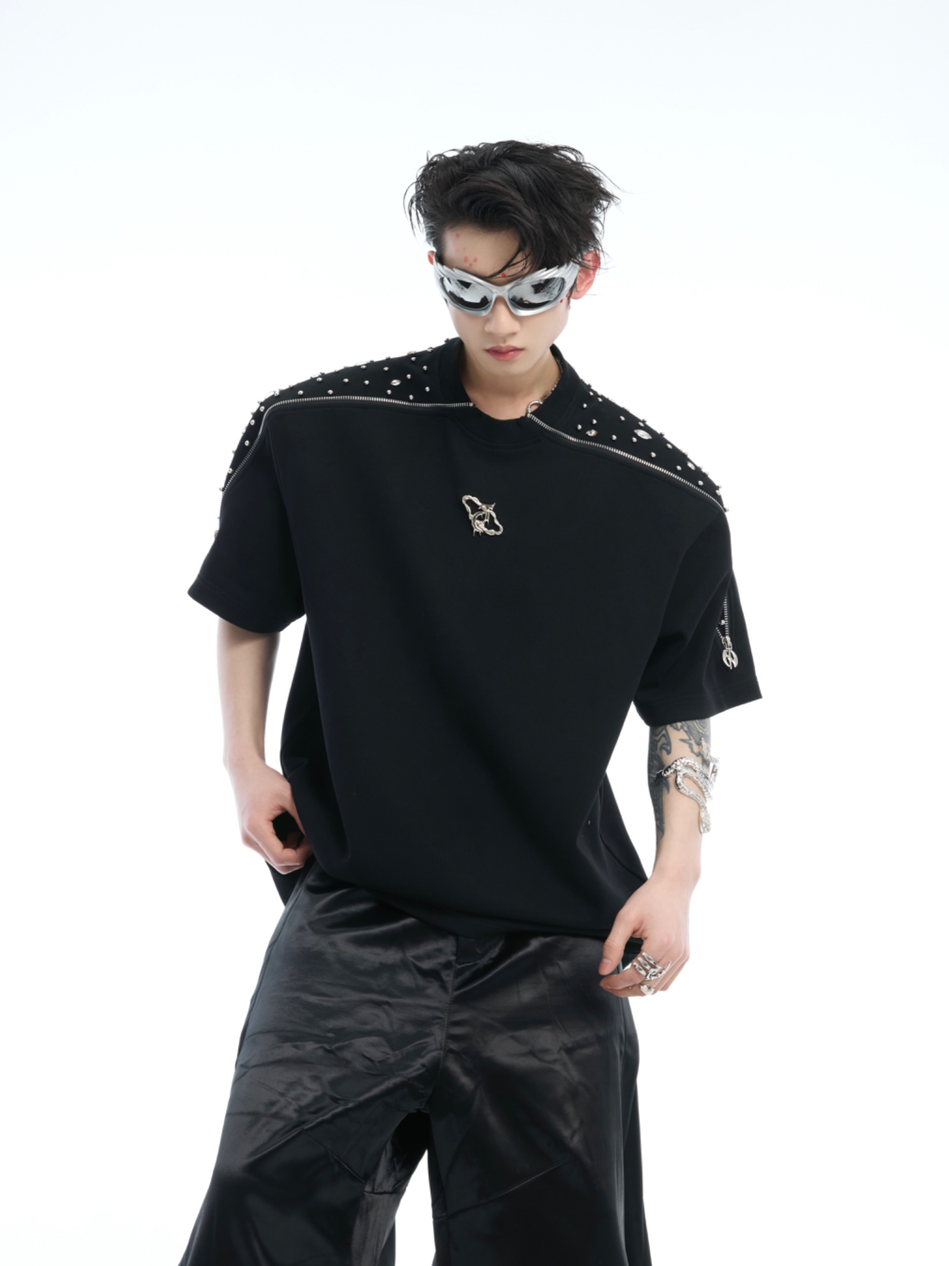 Niche Exquisite Rhinestone Metal Zipper Design Short Sleeve