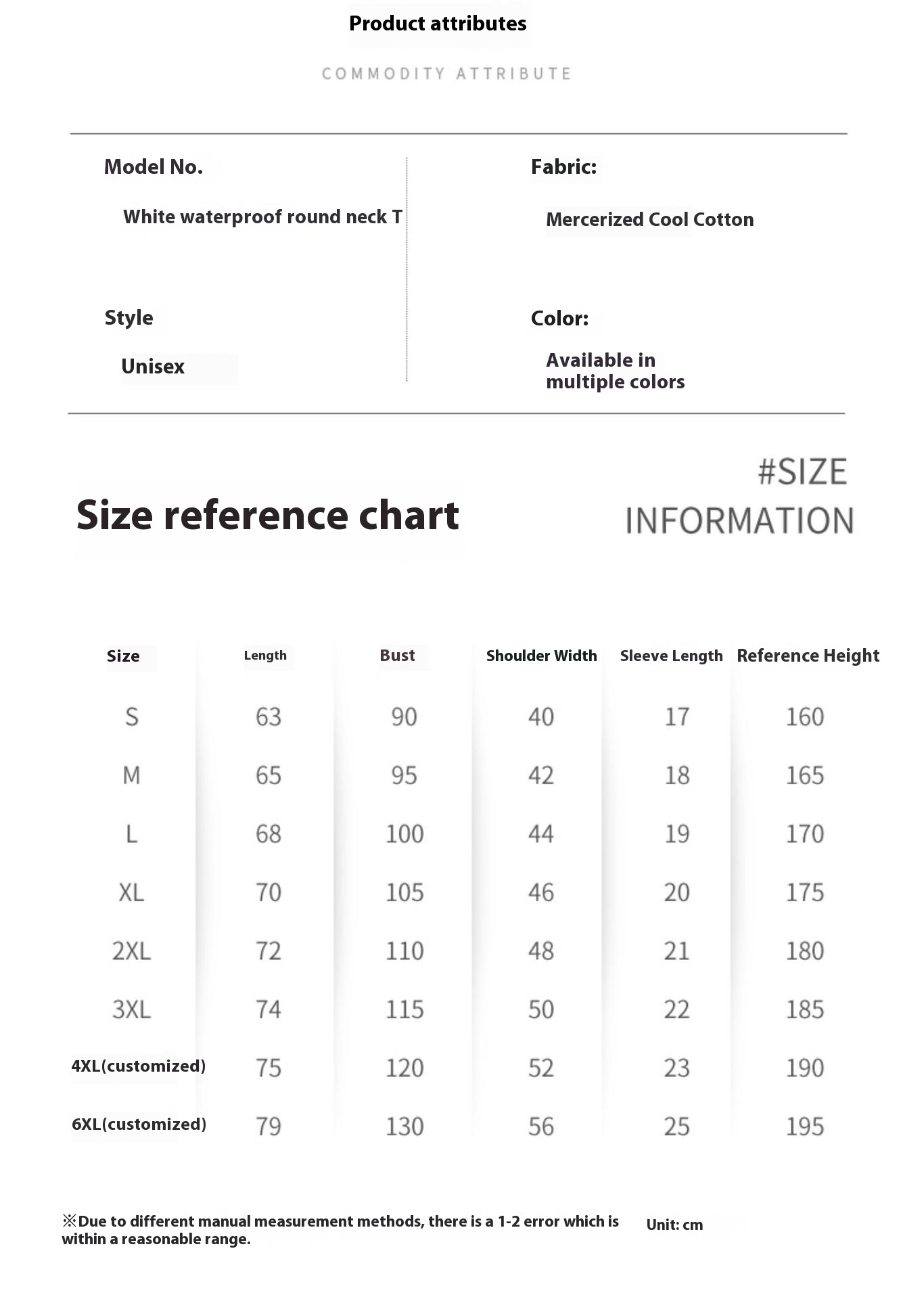 Quick-drying Waterproof Oil-proof Antifouling Round Neck Short Sleeve