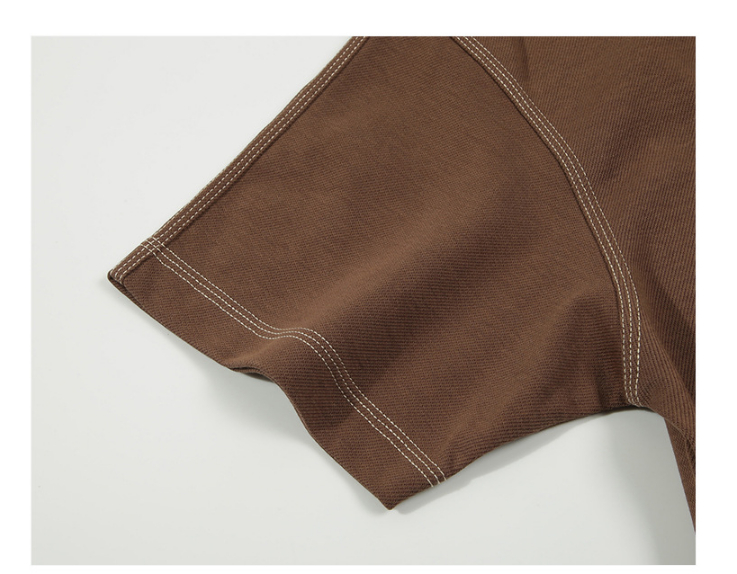 Retro Shoulder Contrasting Color Line Short Sleeved Shirt