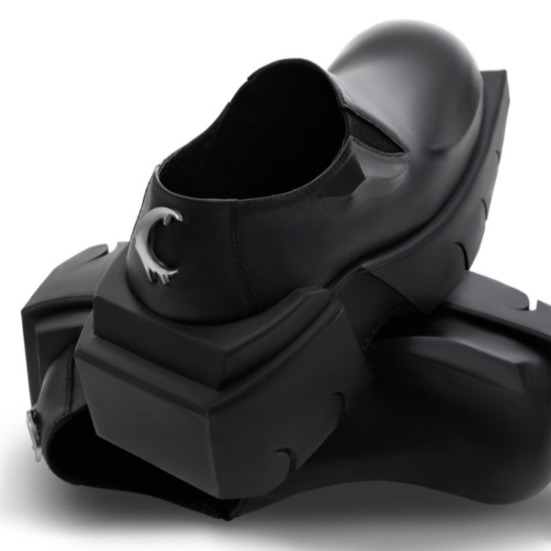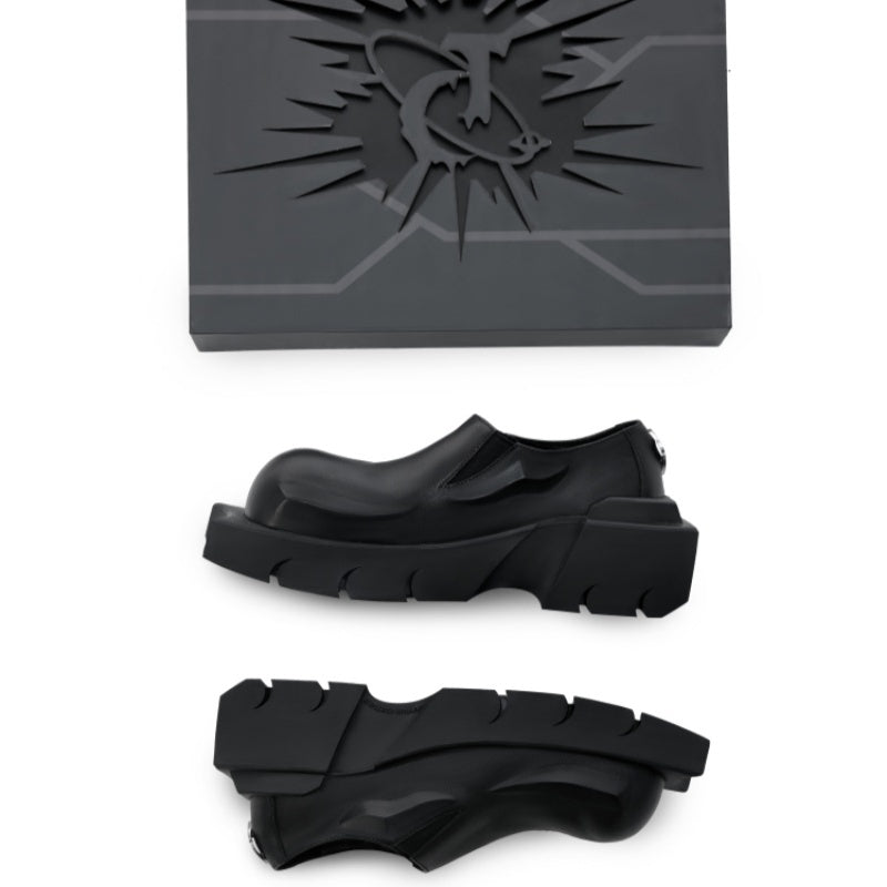 Round Head Derby Platform Shoes Devil Horn Cowhide Leather Low Top