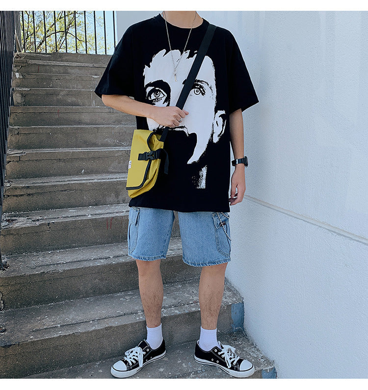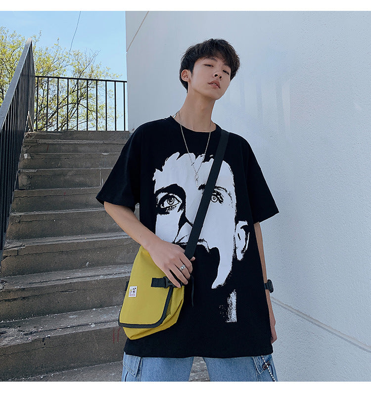 Short-sleeved T-shirt Tide Brand Hong Kong Style Fat Big Size Clothes Loose Trend Couple Ins Men's Clothing