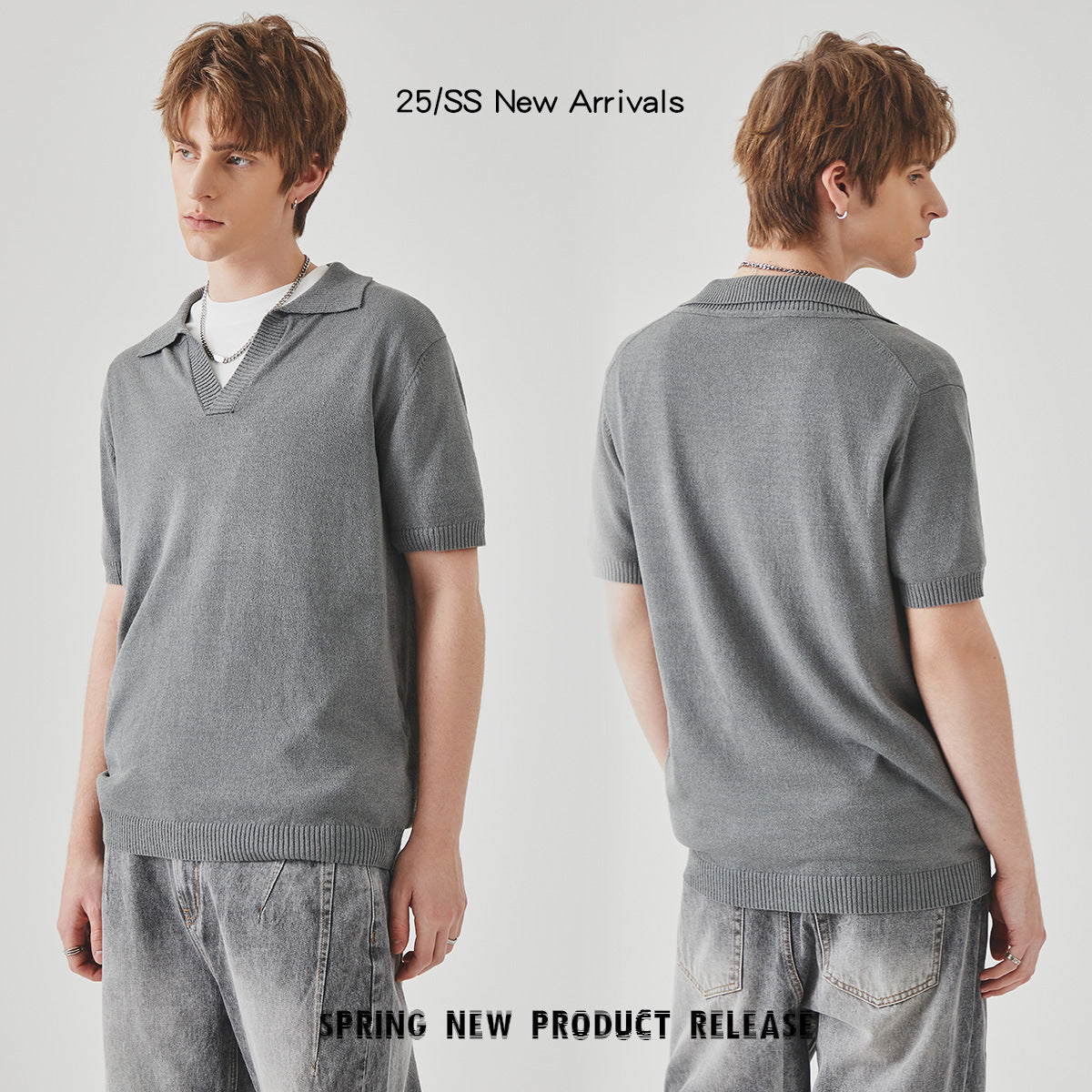 Summer Knitted Short-sleeved High-grade Solid Color Polo Collar Casual T-shirt