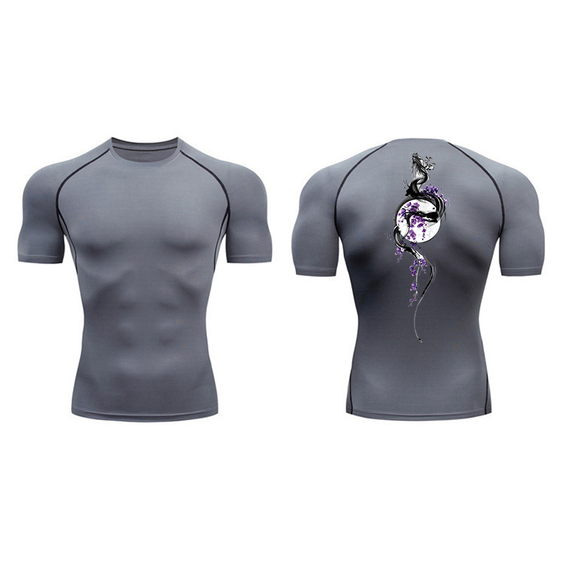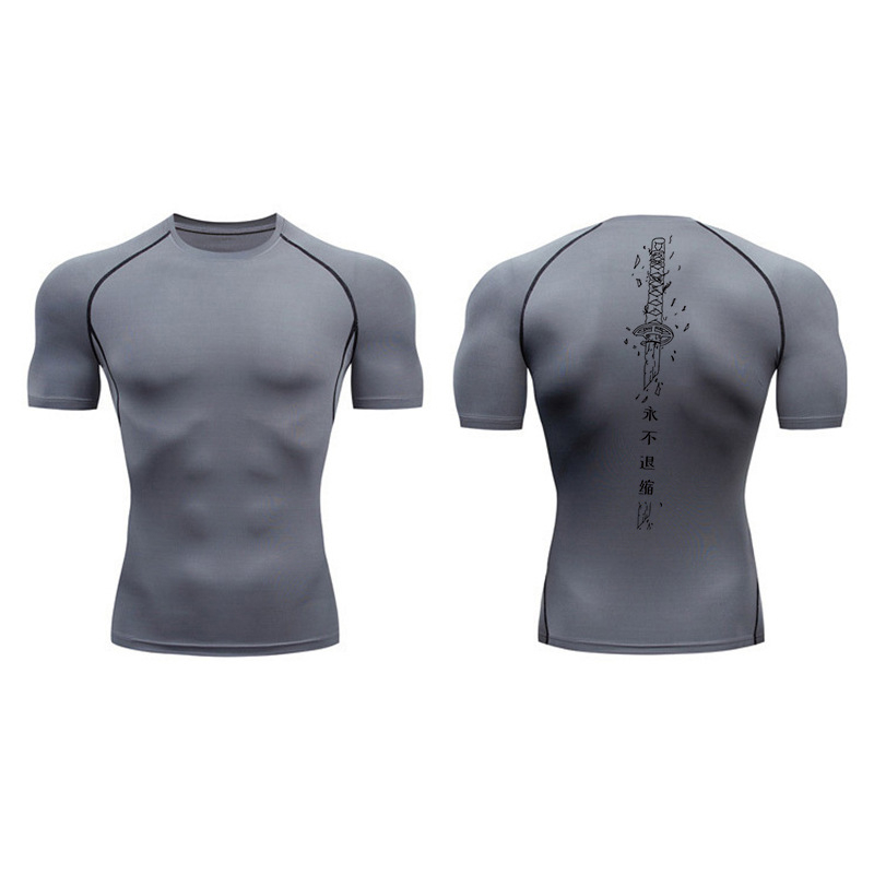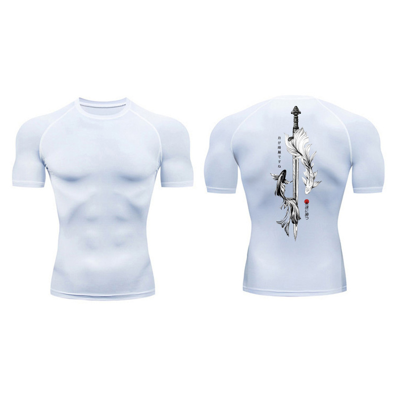 Sword Printed Short Sleeve Compression Shirt Summer Men