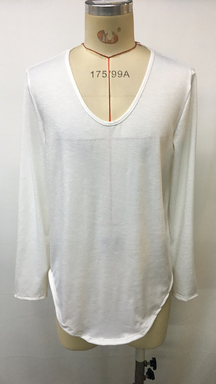 V-neck Breathable Thin Long-sleeved T-shirt Solid Color Top